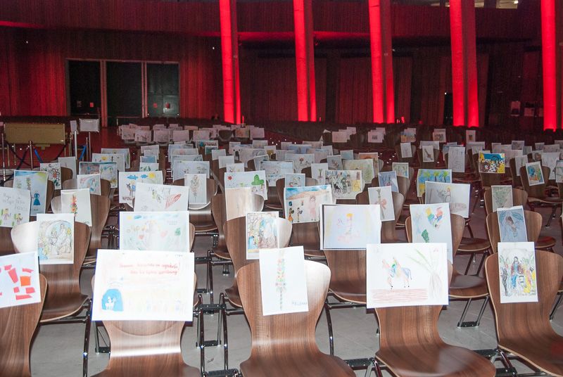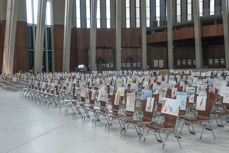 Już podczas poprzedniej niedzieli na krzesłach  w pierwszych rzędach w Świątyni Opatrzności Bożej pojawiły się rysunki wykonane przez dzieci. Tematyka tych prac nawiązywała do czytanego tego dnia fragmentu Ewangelii. Kolorowanki, rysunki autorskie, przygotowane różnymi technikami przez maluchy