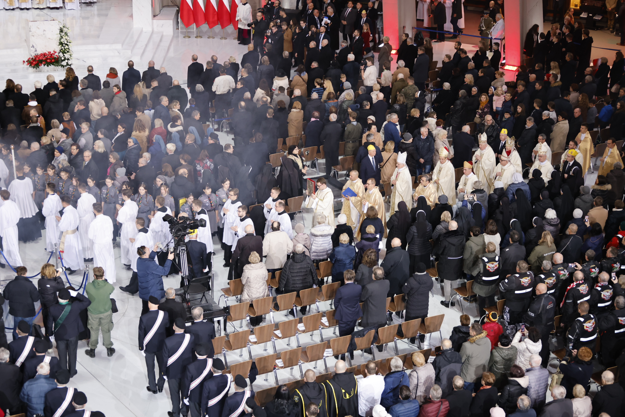 Dziękczynna Eucharystia rozpoczęła się procesjonalnym wejściem biskupów i kilkudziesięciu kapłanów koncelebrujących Eucharystię pod przewodnictwem arcybiskupa metropolity warszawskiego, kardynała Kazimierza Nycza. Hierarcha, który niebawem kończy swą pasterską posługę jako rządca stołecznej metropolii, ma ogromne zasługi dla budowy Wotum Narodu. Dzieło to przejął z rąk Prymasa Polski, śp. Józefa Glempa i prowadził z ogromną energią, aż do otwarcia Świątyni dla wiernych w 2016 roku.