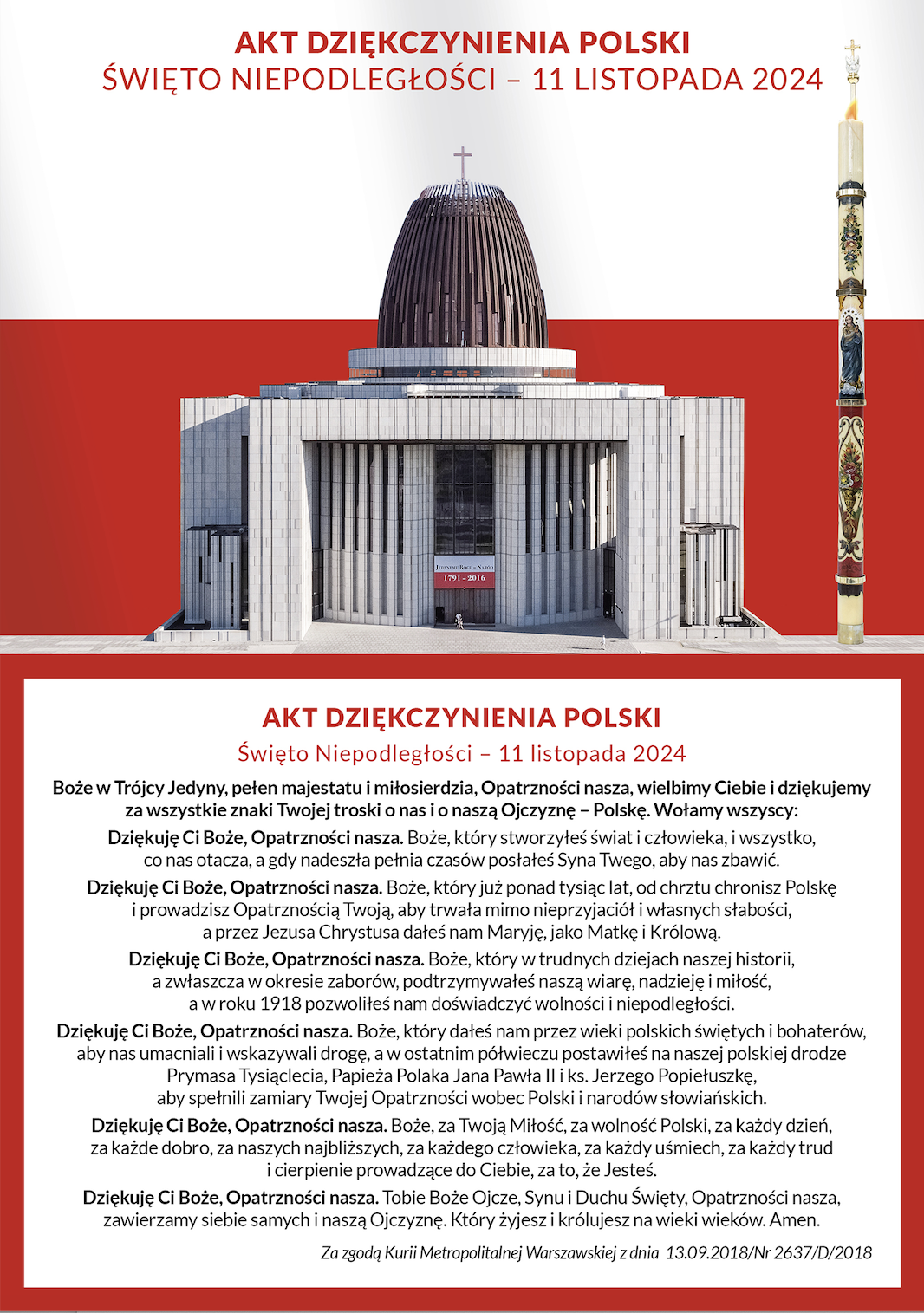 Następnie arcybiskup metropolita warszawski kardynał Kazimierz Nycz wspólnie z wiernymi odczytał Akt Dziękczynienia i Zawierzenia.