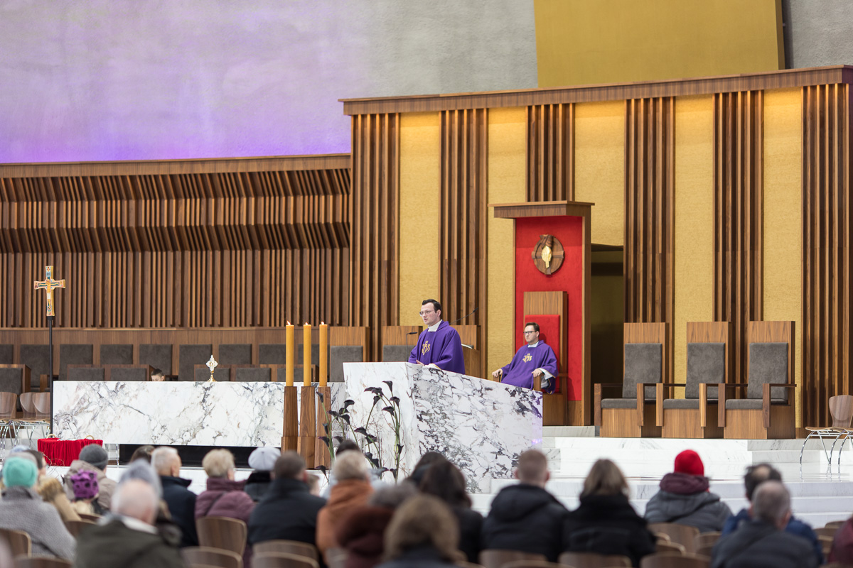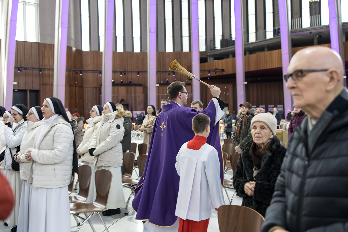 Na 14. już dziękczynną Eucharystię za Łaskę Chrztu, która została odprawiona 21 lutego o 12.00, w pierwszą sobotę po rozpoczęciu Wielkiego Postu, mimo nienajlepszej pogody przybyło kilkuset wiernych pragnących podziękować Opatrzności za wydarzenie, które przed laty włączyło ich do wspólnoty Kościoła.