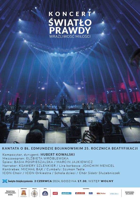 15 maja 2024 | Kategoria: 2 czerwca 2024, Aktualności, Święto Dziękczynienia and tagged with: Basia Pospieszalska, Bł. Edmund Bojanowski, Elżbieta Wróblewska, Hubert Kowalski, ICON Choir, ICON Orkiestra, Joachim Mencel, Marcin Jajkiewicz, Michał Bąk\, Święto Dziękczynienia, Szymon Tadla, Zgromadzenie Sióstr Służebniczek NMP