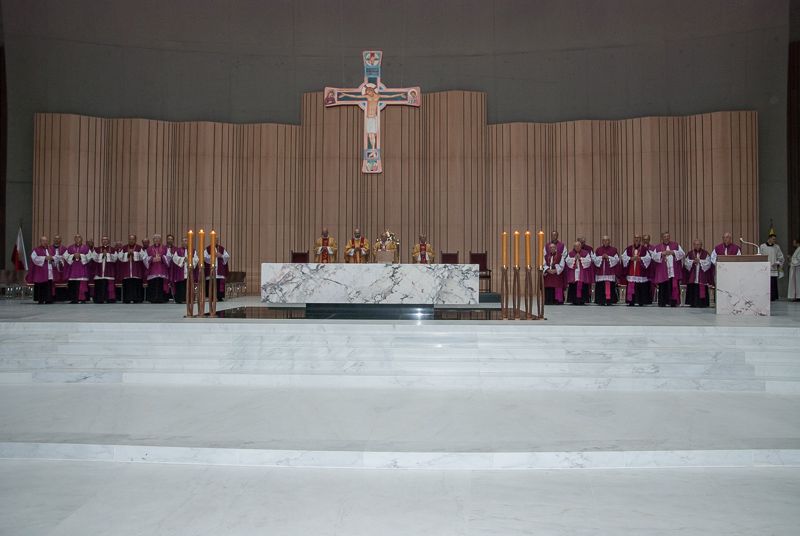 Następnie kanonicy udali się do Świątyni, gdzie w południe odprawiona została przez arcybiskupa warszawskiego księdza kardynała Kazimierza Nycza Msza Święta. Powitał ich gospodarz miejsca – ksiądz prałat Tadeusz Aleksandrowicz.
