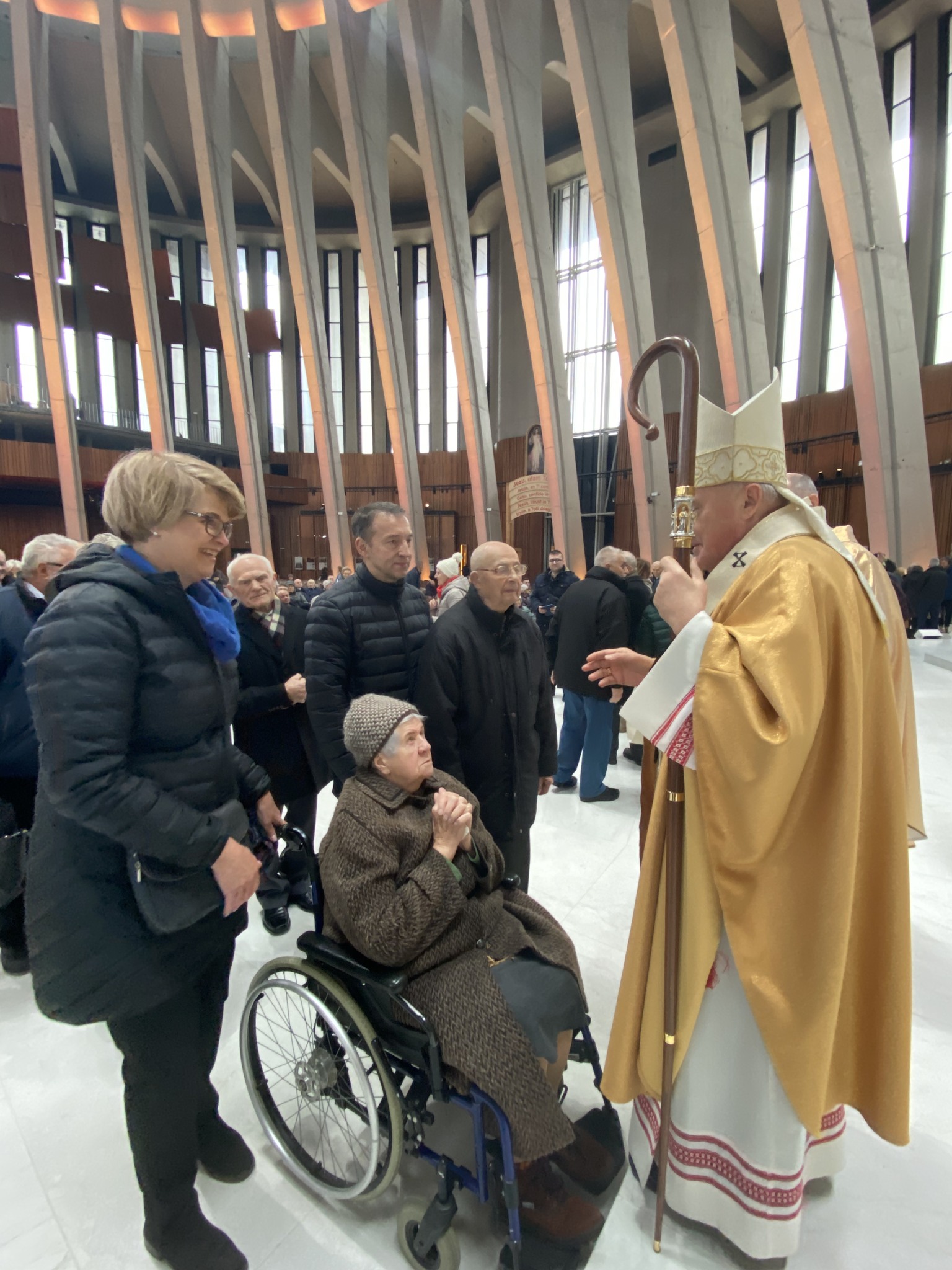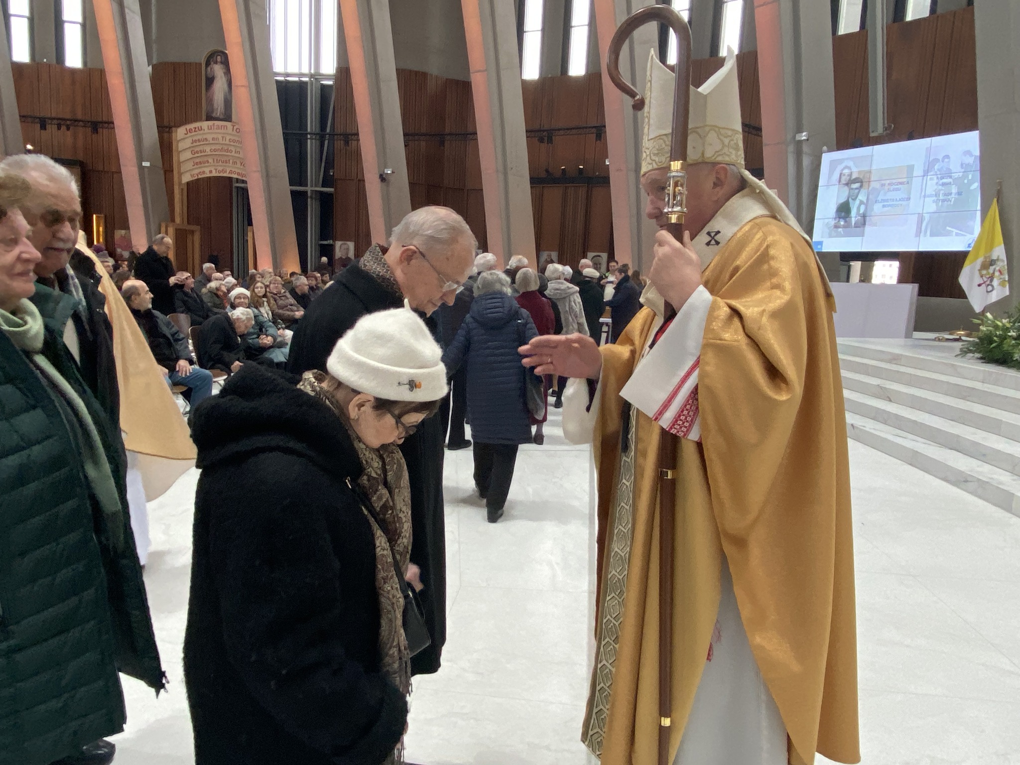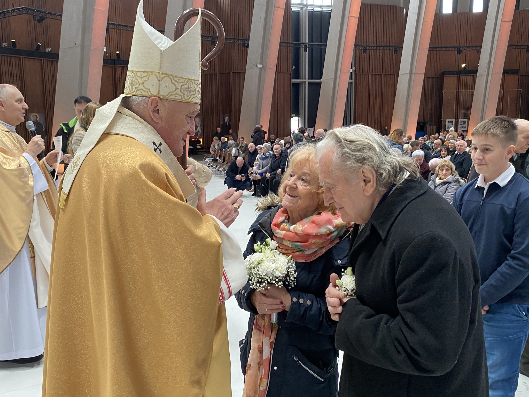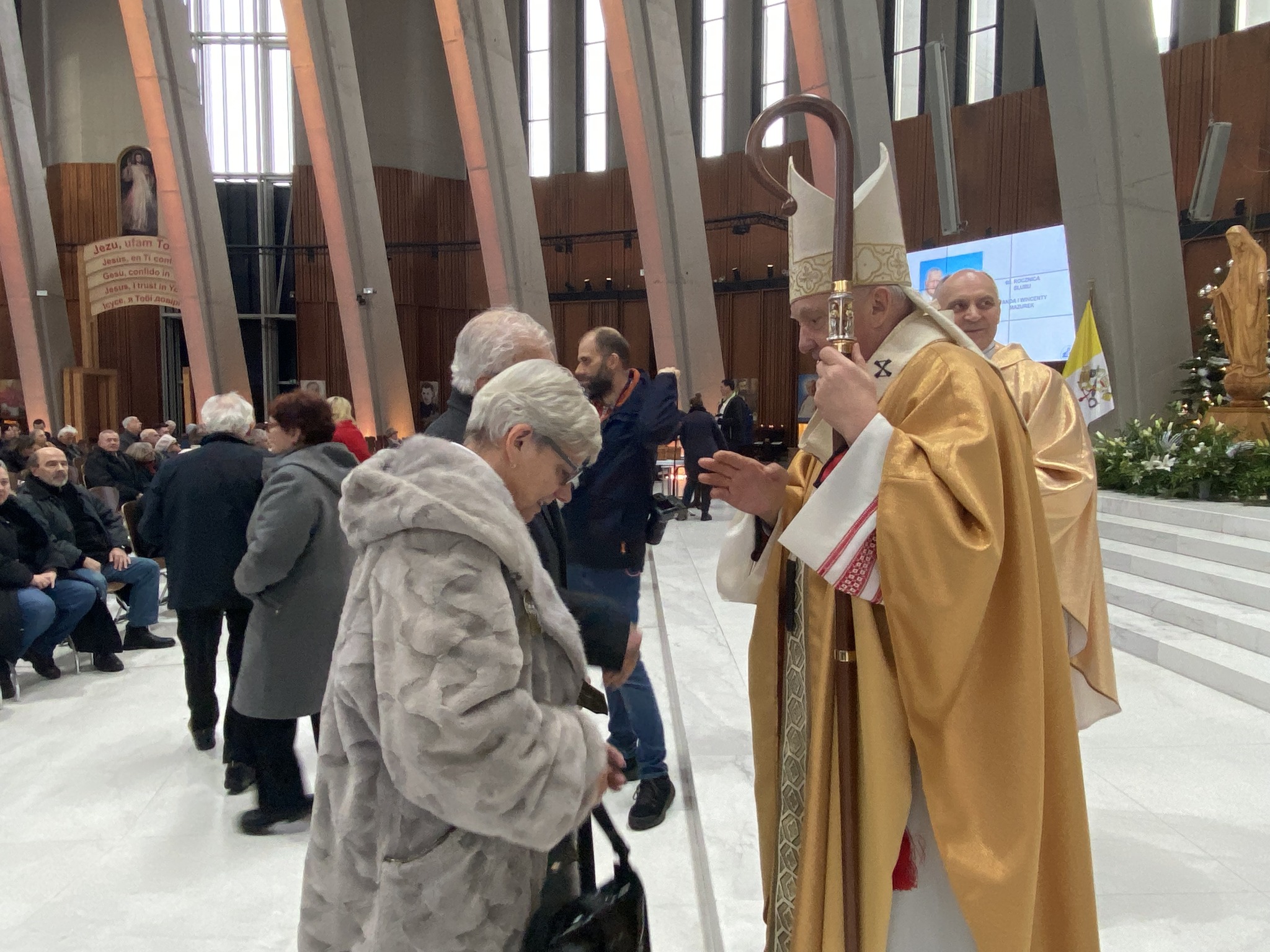 Po zakończeniu uroczystej Eucharystii małżonkowie od najstarszych z 70-letnim stażem aż do najmłodszych 5-latków, wyczytywani przez ks. Tadeusza Aleksandrowicza, kustosza wilanowskiego Sanktuarium ustawili się w długim orszaku par zmierzających do ołtarza. Tu kardynał Kazimierz Nycz udzielał każdej z par pasterskiego błogosławieństwa. Następnie małżonkowie odbierali pamiątkowe dyplomy, znak swojego wyjątkowego jubileuszu w roku 2023 w Świątyni Opatrzności Bożej.