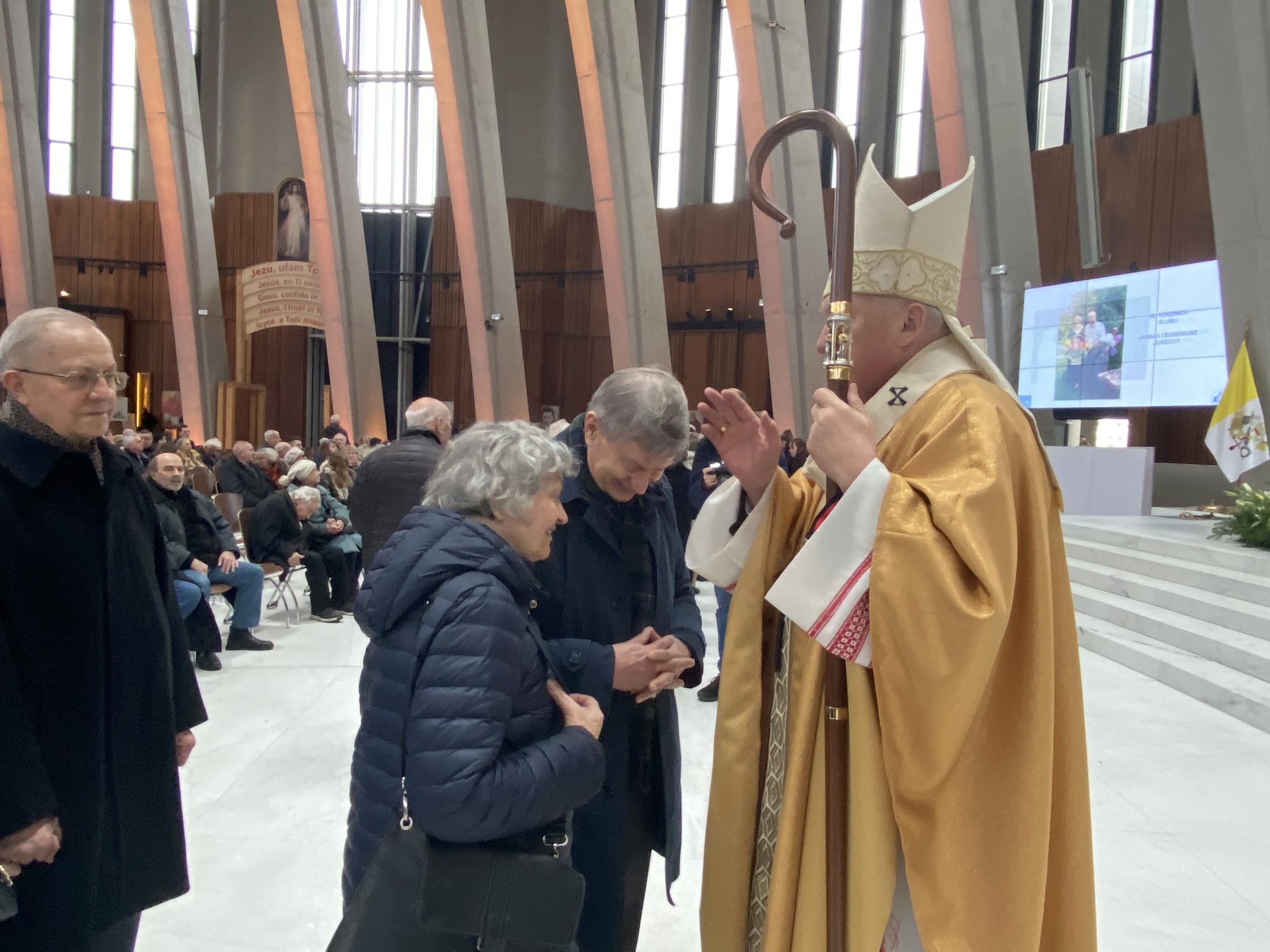 Przekazując na zakończenie homilii życzenia dla małżonków, kapłan odwołał się do Czytania z Pierwszego Listu Świętego Jana Apostoła (1 J 2, 12-17). To miłość jest fundamentem małżeństwa i wszelkiej ofiarności. – I ta miłość, kiedy macie przed sobą kolejne lata, może trudniejsze, ona będzie się jeszcze bardziej sprawdzać, czy jest gotowa do ofiary i do przebaczenia, tak jak to mówi św. Paweł w pięknym hymnie o miłości: jest łaskawa, cierpliwa, nie zazdrości, nie szuka swego. I tego Wam, Bracia i Siostry, Kochani Jubilaci, życzę na te lata po Waszych jubileuszach – podsumował kard. Nycz.