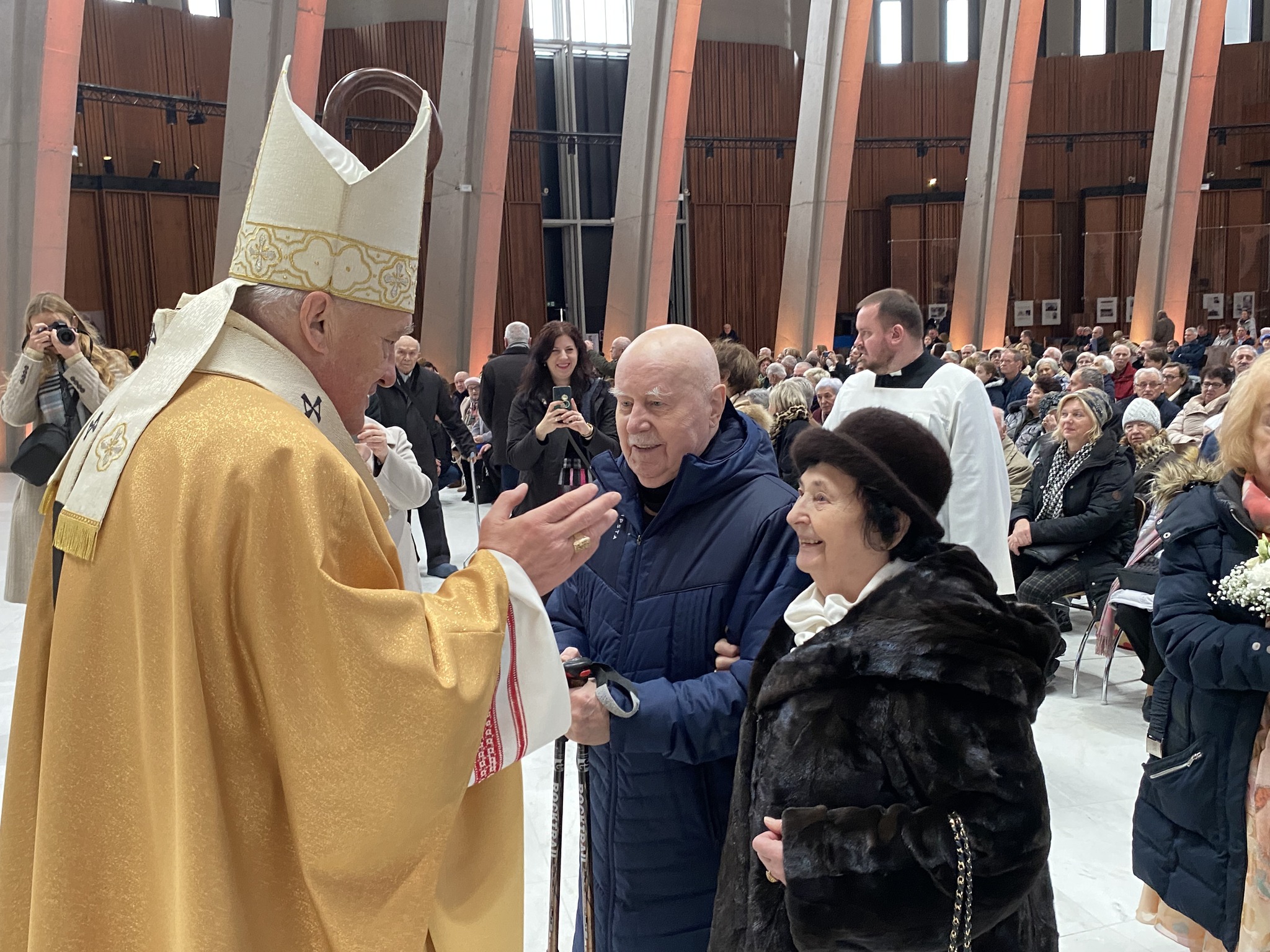 Aż siedem par świętowało w wilanowskim Sanktuarium 70-lecie sakramentu małżeństwa. Trzy spośród nich przybyły osobiście do Wilanowa. Najliczniejszą grupę stanowili – podobnie jak w roku ubiegłym – jubilaci, którzy obchodzili w 2023 roku swoje złote gody.