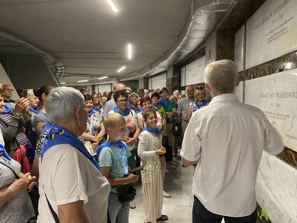 Pielgrzymi przybyli do wilanowskiej Świątyni wprost w Niepokalanowa, od św. Ojca Maksymiliana Marii Kolbego. Okazało się, że w łebniańskiej grupie mamy gości, którzy są w Świątyni już kolejny raz. I wszyscy oni byli pod niezwykłym wrażeniem zmian, jakie zaszły w tym miejscu w ciągu minionego roku.