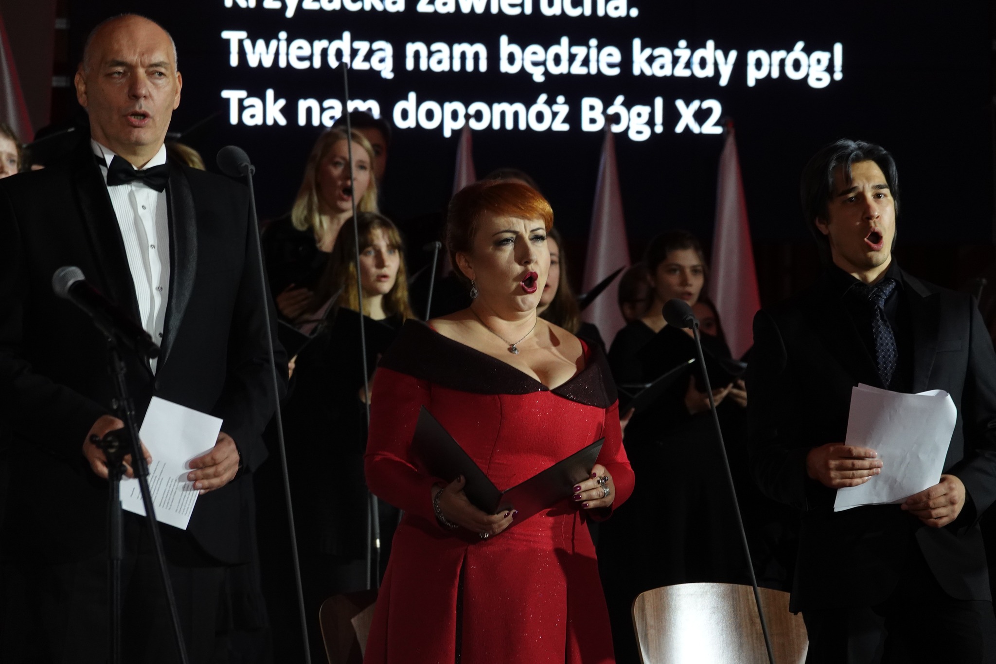 Finałem koncertowego spotkania stało się wspólne śpiewanie pieśni patriotycznych przez wszystkich zebranych w wilanowskiej Świątyni. Wybrzmiały kolejno: “Rota”, “My, Pierwsza Brygada”, “Maszerują strzelcy (Szara piechota)”.
