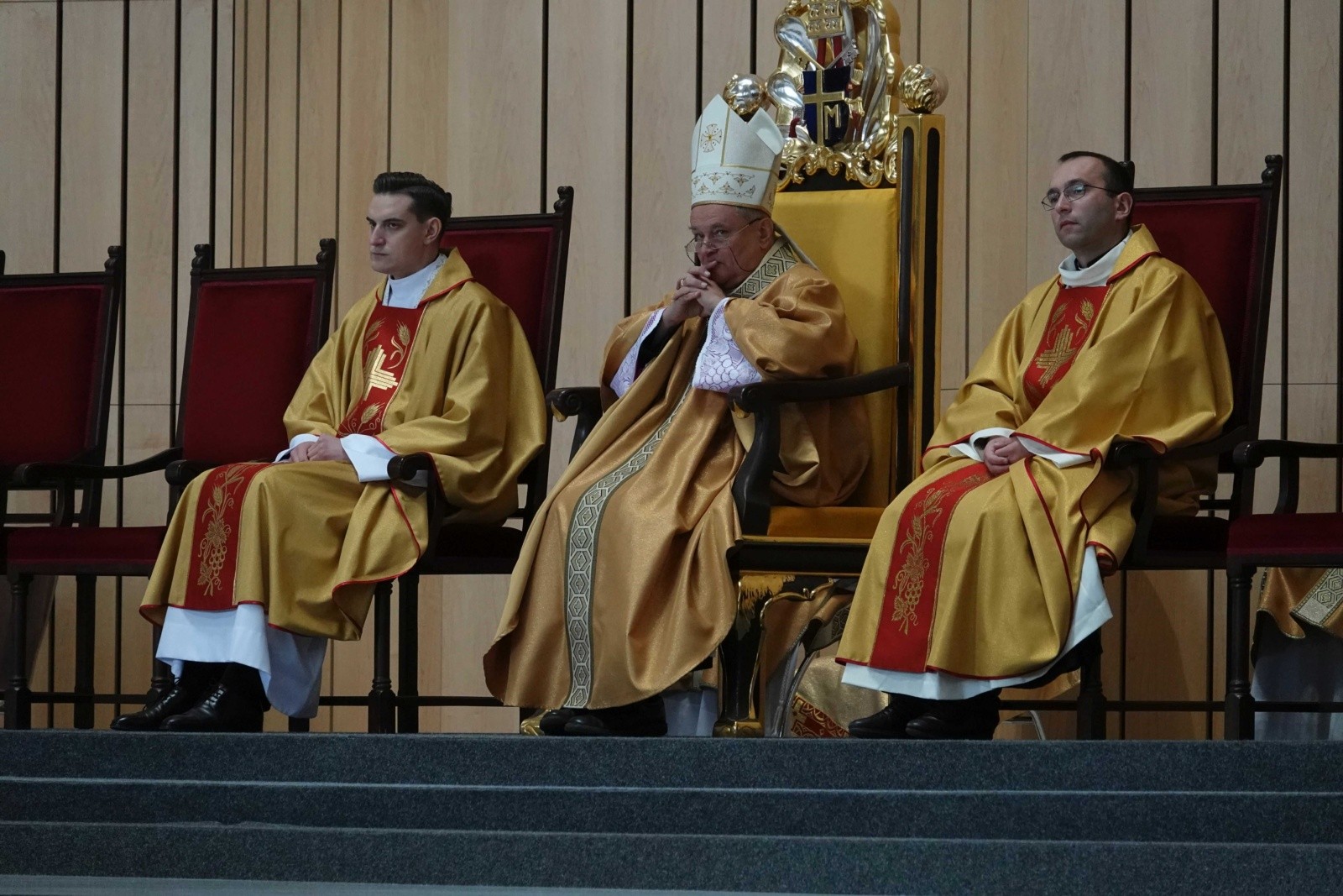 Podczas liturgii przy ołtarzu towarzyszył biskupowi Michałowi także ksiądz Mateusz Kielarski, jeszcze niedawno wikariusz w parafii Opatrzności Bożej.
