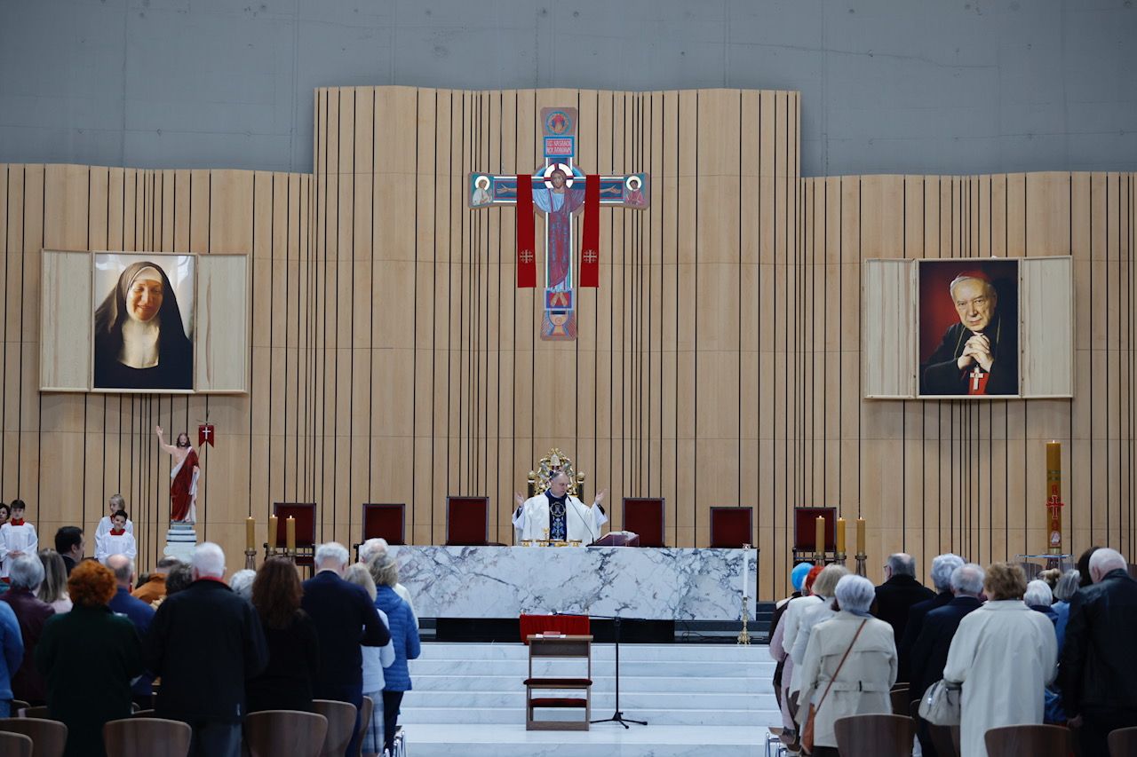 W stojącym pod ołtarzem koszu złożono setki nadesłanych na tę uroczystość intencji, a pielgrzymi dokładali kolejne.