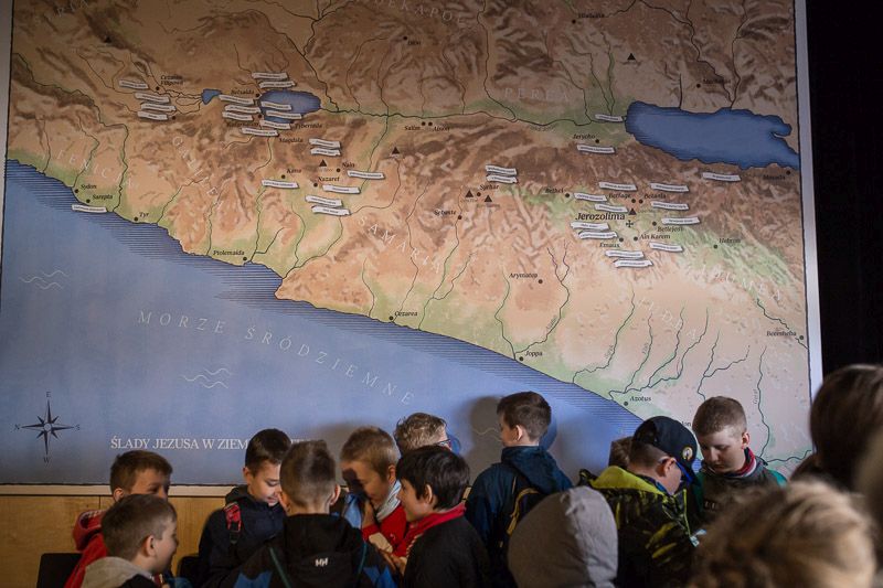 Pozostali wysłuchali wykładu ojca profesora Narcyza Klimasa, opiekuna merytorycznego wystawy, mieszkającego od 30 lat w Jerozolimie i prowadzącego badania naukowe nad Bożym Grobem.