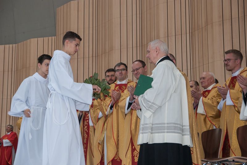 Nowi absolwenci kolejnego kursu lektorskiego podchodzili kolejno do kardynała Kazimierza Nycza, by, kładąc dłonie na Piśmie Świętym, uzyskać promowanie na lektorów.
