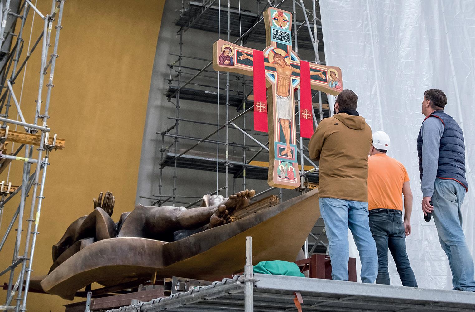 Jedną z najbardziej skomplikowanych operacji okaże się wprowadzenie ogromnej figury Chrystusa Zmartwychwstałego do Świątyni Opatrzności Bożej. Rozpiętość dzieła wynosi 4 na 8 metrów, tyle co główne skrzydło drzwi Sanktuarium, dlatego można to było zrobić tylko bokiem.