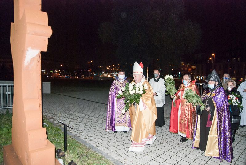 Złożono kwiaty pod posadowionym od strony Alei Rzeczypospolitej chaczkarem ormiańskim kamiennym krzyżem, przedstawianym jako drzewo życia, pokrytym bogatymi ornamentami, będącym darem Ormian poświęconym świętemu Janowi Pawłowi II w 40. rocznicę Jego pontyfikatu. Od 2018 roku upamiętnia 100. rocznicę odzyskania niepodległości przez Armenię i Polskę.