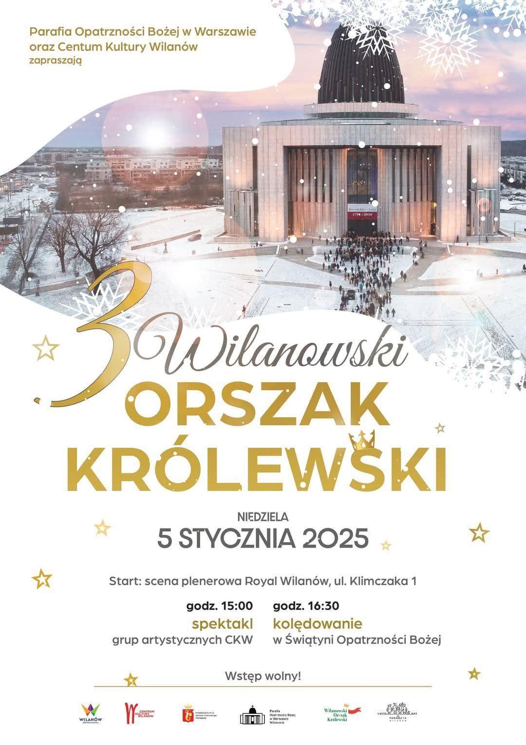 Po przedstawieniu świątecznym na scenie przy Royal Wilanów. Następnie korowód z trzema królami na czele ruszy ul. Klimczaka w kierunku Świątyni Opatrzności Bożej, w której odbędzie się koncert kolęd w wykonaniu m.in. Nutek Opatrzności i Wilanowskiej Orkiestry Dętej.