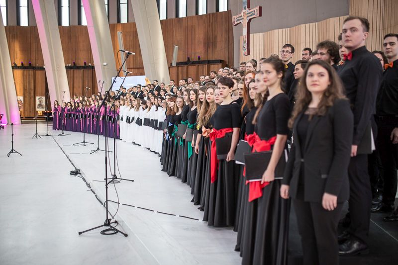 Te wykonywane przez połączone chóry od dyrekcją Jana Krutula usłyszeliśmy prawykonanie Gloria Patri – utworu skomponowanego na zamówienie Centrum Myśli Jana Pawła II przez profesora Pawła Łukaszewskiego oraz Niech zstąpi Duch Twój Zuzanny Falkowskiej.