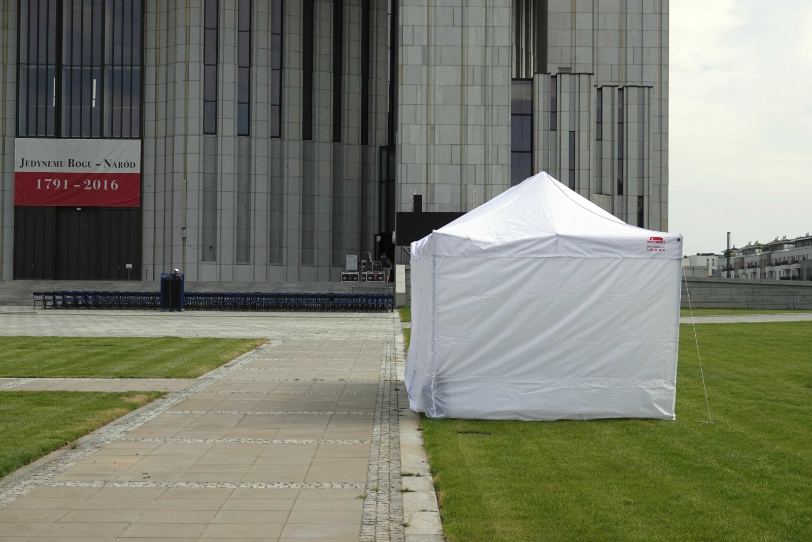 przygotowaniaNa równo przystrzyżonych trawnikach pojawiły się namioty, w których znajdą się dewocjonalia i pamiątki ze Świątyni.