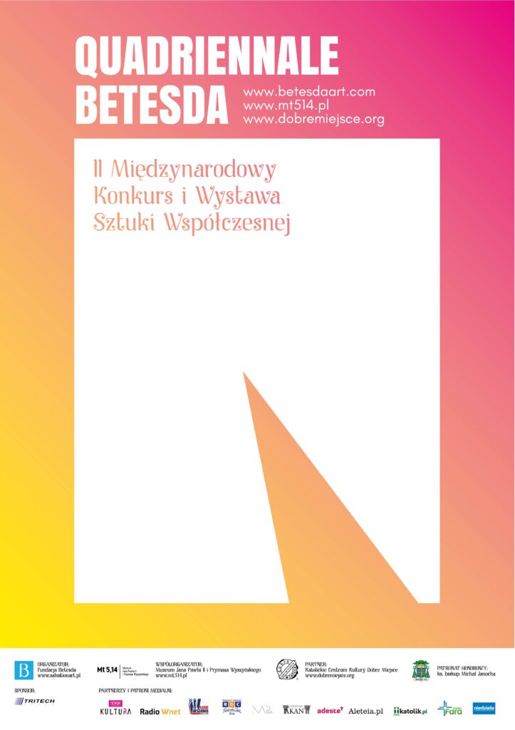 Fundacja Betesda, Mt 5,14 | Muzeum Jana Pawła II i Prymasa Wyszyńskiego oraz Katolickie Centrum Kultury „Dobre Miejsce” zapraszają na II Międzynarodową Wystawę Sztuki Nowoczesnej QUADRIENNALE BETESDA, który od 16 października 2021 r. jest prezentowana w Mt 5,14 | Muzeum Jana Pawła II i Prymasa Wyszyńskiego przy ul. Prymasa Augusta Hlonda 1 w Warszawie. Prace będzie można oglądać do końca grudnia br. w dwóch lokalizacjach Muzeum: na ekspozycji głównej Mt 5,14 (w godzinach otwarcia Muzeum) oraz w jego oddziale przy pl. Bankowym 1A.