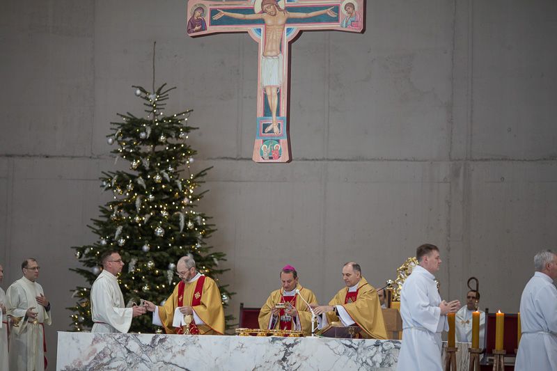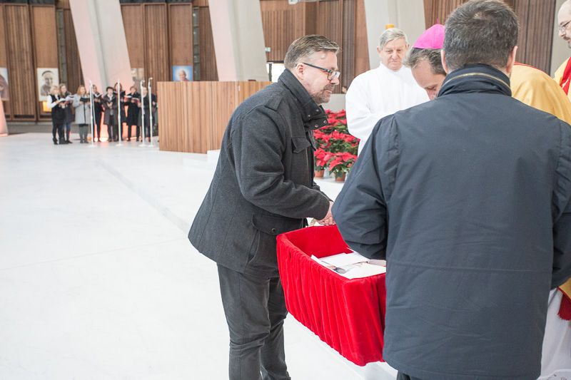 W oczekiwaniu na Eucharystię przybywający do Świątyni mogli obejrzeć wyświetlany na ścianie ołtarzowej film, opowiadający historię jej powstania, a także film relacjonujący wydarzenia mijającego właśnie roku.