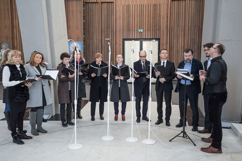 Projekcji towarzyszyły kolędy w znakomitym wykonaniu Zespołu Wokalno-Instrumentalnego Canticum Gratiorum, prowadzonego przez Jacka Jackowskiego który następnie towarzyszył wiernym przez całą Mszę Świętą.