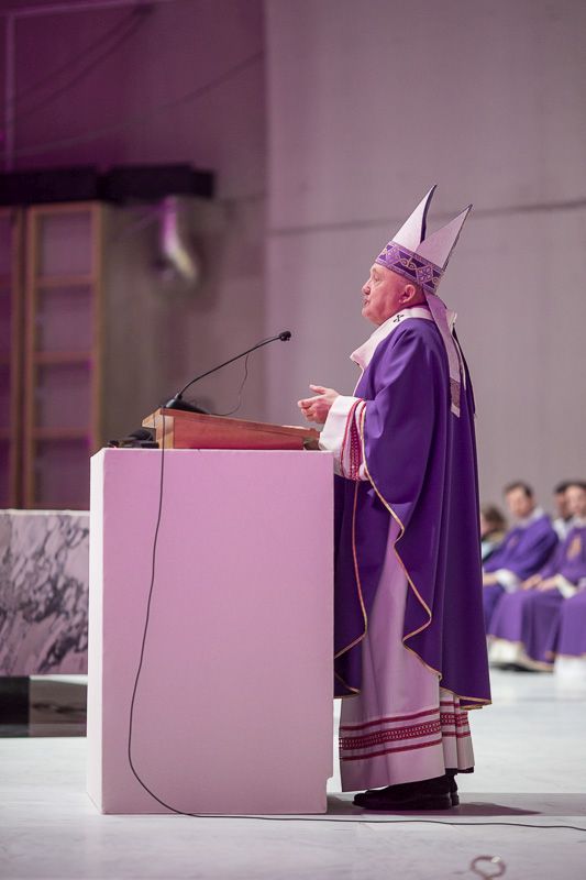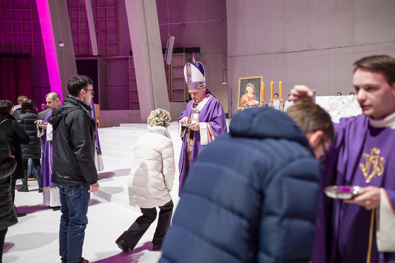 Uroczystości Środy Popielcowej zakończyła uroczysta Eucharystia, którą w otoczeniu siedmiu kapłanów koncelebrował Metropolita Warszawski, ksiądz kardynał Kazimierz Nycz.
