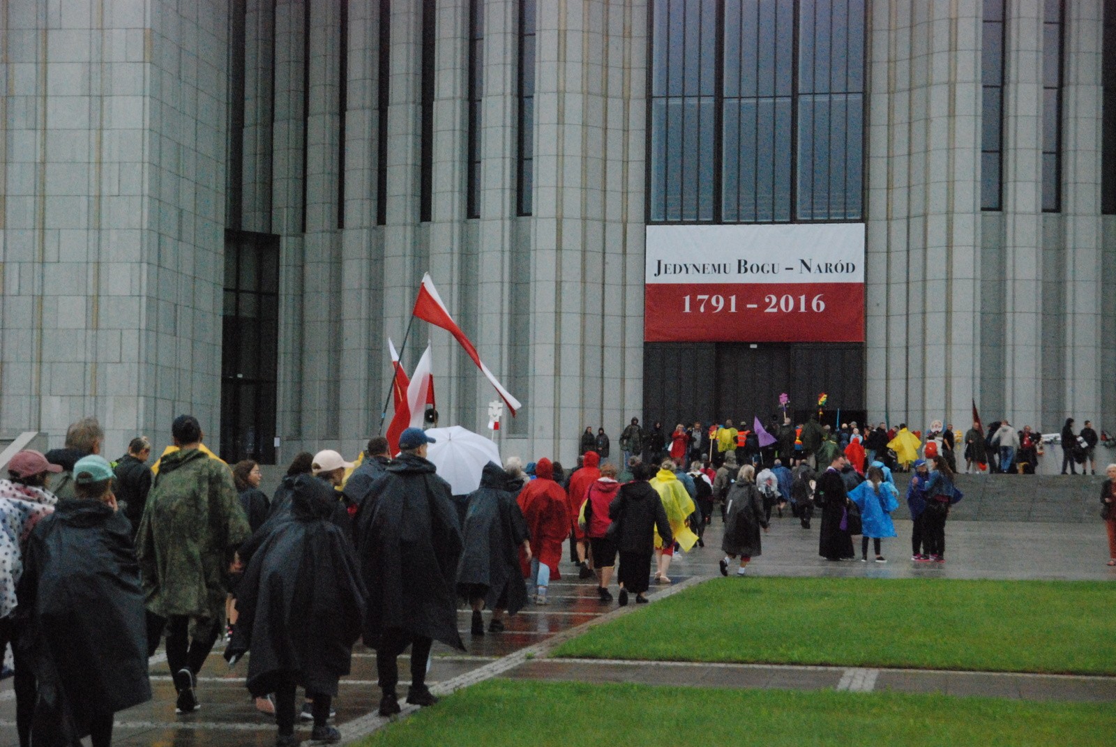 "Siedemnastki"Uciążliwy deszcz, który z mniejszą lub większą intensywnością padał od nocy, nie zepsuł humorów pielgrzymom, o czym świadczyły radosne pieśni, słyszane na długo przedtem, nim pierwsza grupa zbliżyła się do Świątyni, i skandowane z zapałem okrzyki: NIE JEST DOBRZE! JEST NIEBIAŃSKO!