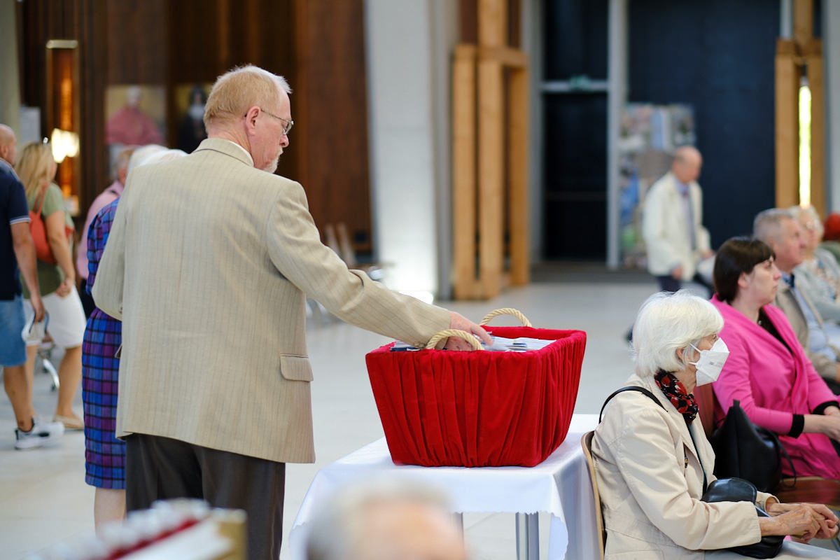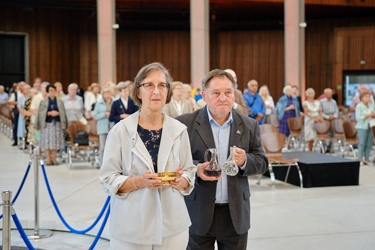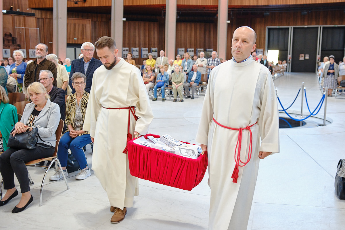 W procesji z darami ołtarza zaniesiono kosz wypełniony po brzegi intencjami złożonymi przez Darczyńców Świątyni na 14. dzień skupienia.