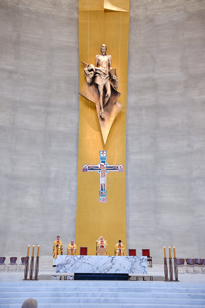 Goście obecni w Świątyni mogli także obejrzeć na telebimach filmową historię powstawania i lokowania w prezbiterium figury Chrystusa Zmartwychwstałego.