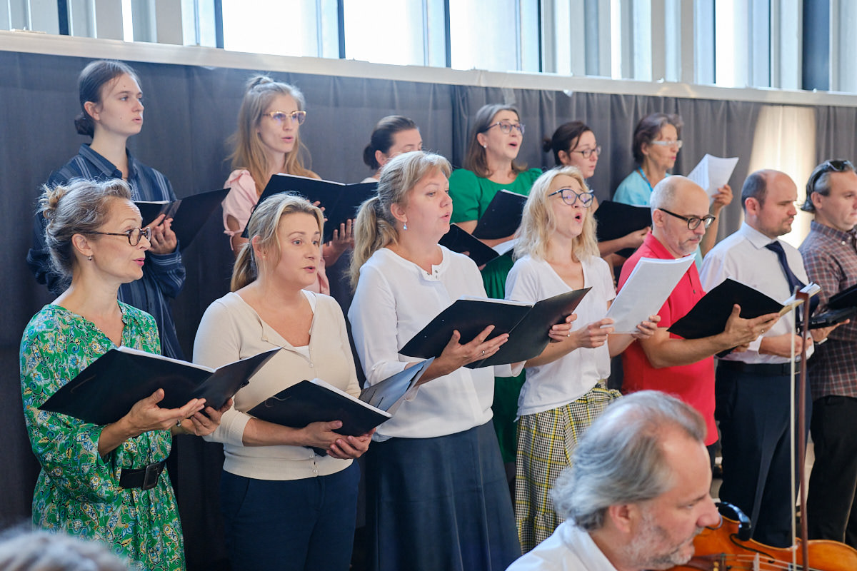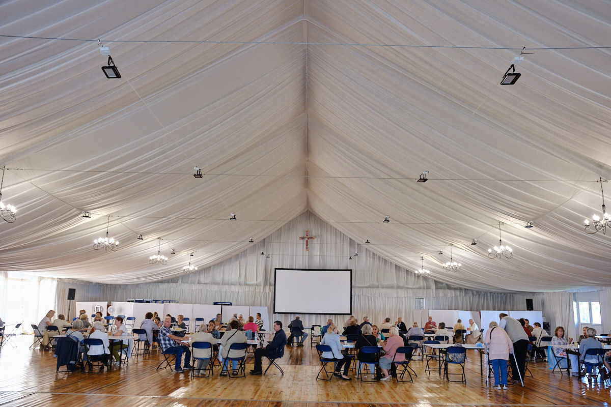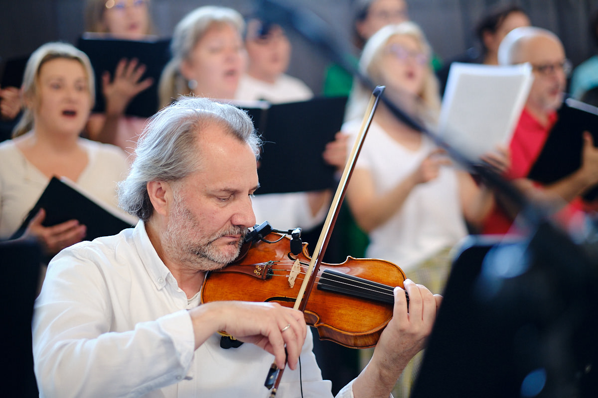 Uroczysta Eucharystia 14. dnia skupienia zakończyła się podziękowaniami ks. Tadeusza Aleksandrowicza dla Chóru Canticum Gratiorum pod przewodnictwem Jacka Jackowskiego, który towarzyszył muzyką i śpiewem całej Liturgii oraz zaproszeniem na poczęstunek do Białego Namiotu dla wszystkich pielgrzymów i Darczyńców.