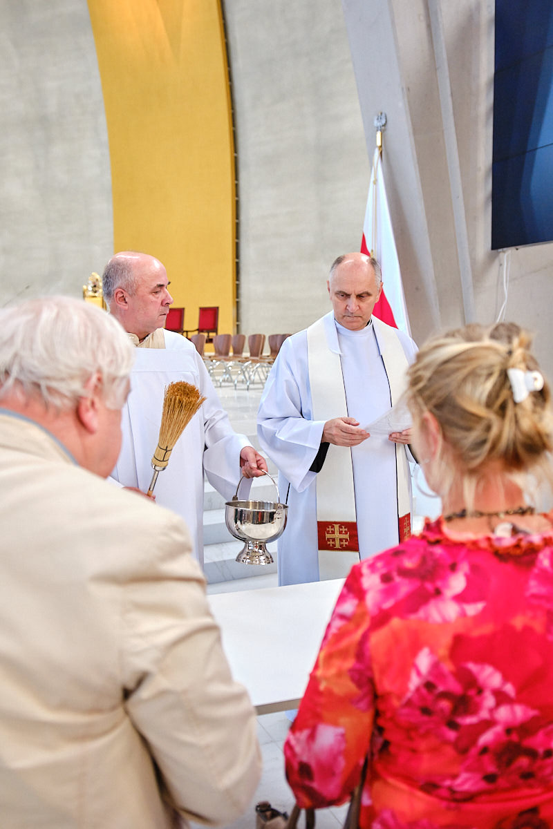 16 września 2023 roku do Świątyni Opatrzności Bożej przybyli nie tylko Darczyńcy, ale też liczni pielgrzymi z różnych miejsc w Polsce. Była piękna słoneczna pogoda. Rozpoczęliśmy nasz 14. dzień skupienia Adoracją Najświętszego Sakramentu i wspólną modlitwą różańcową, prowadzoną przez ks. Tadeusza Aleksandrowicza, kustosza wilanowskiego Sanktuarium.
