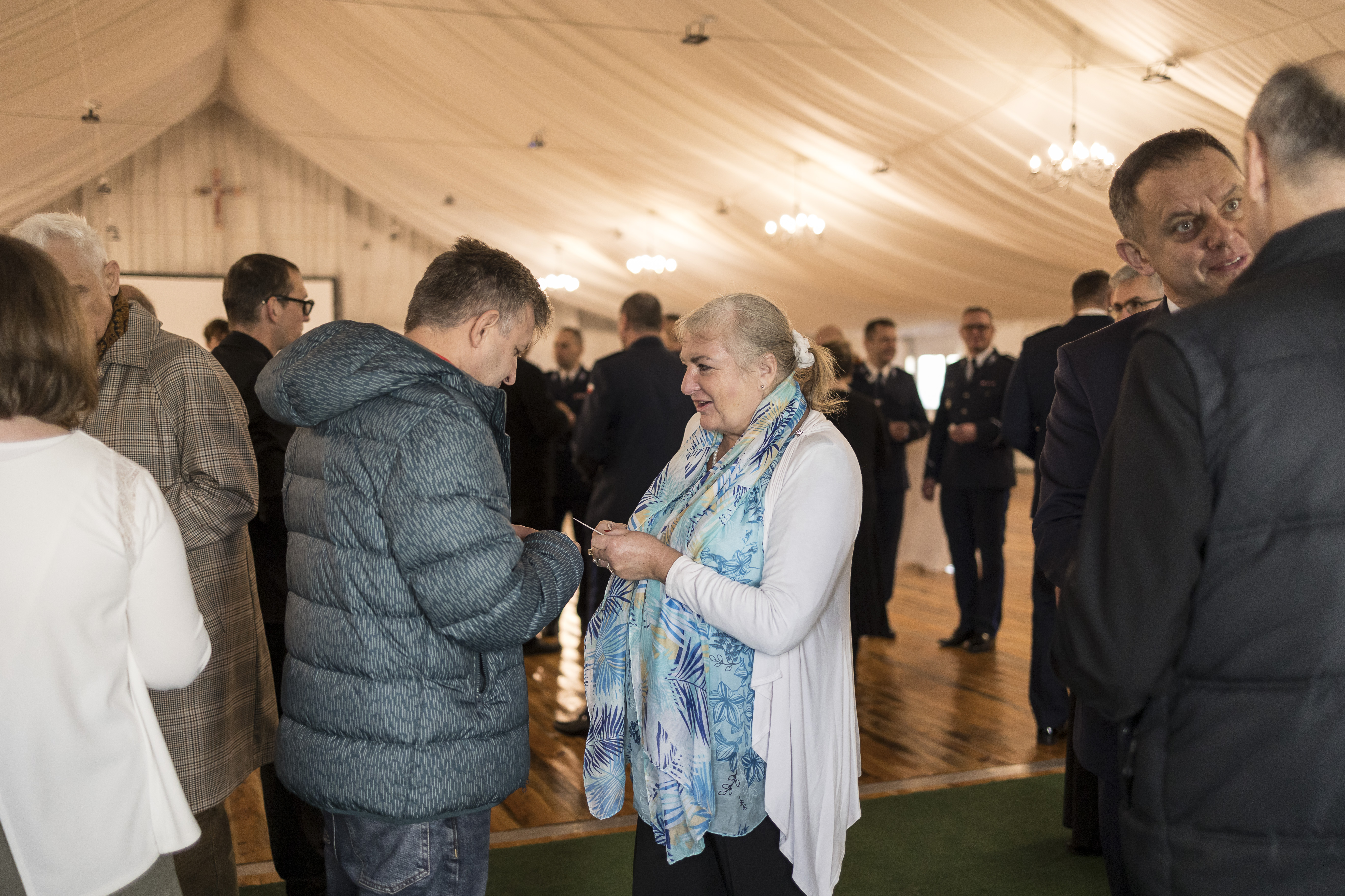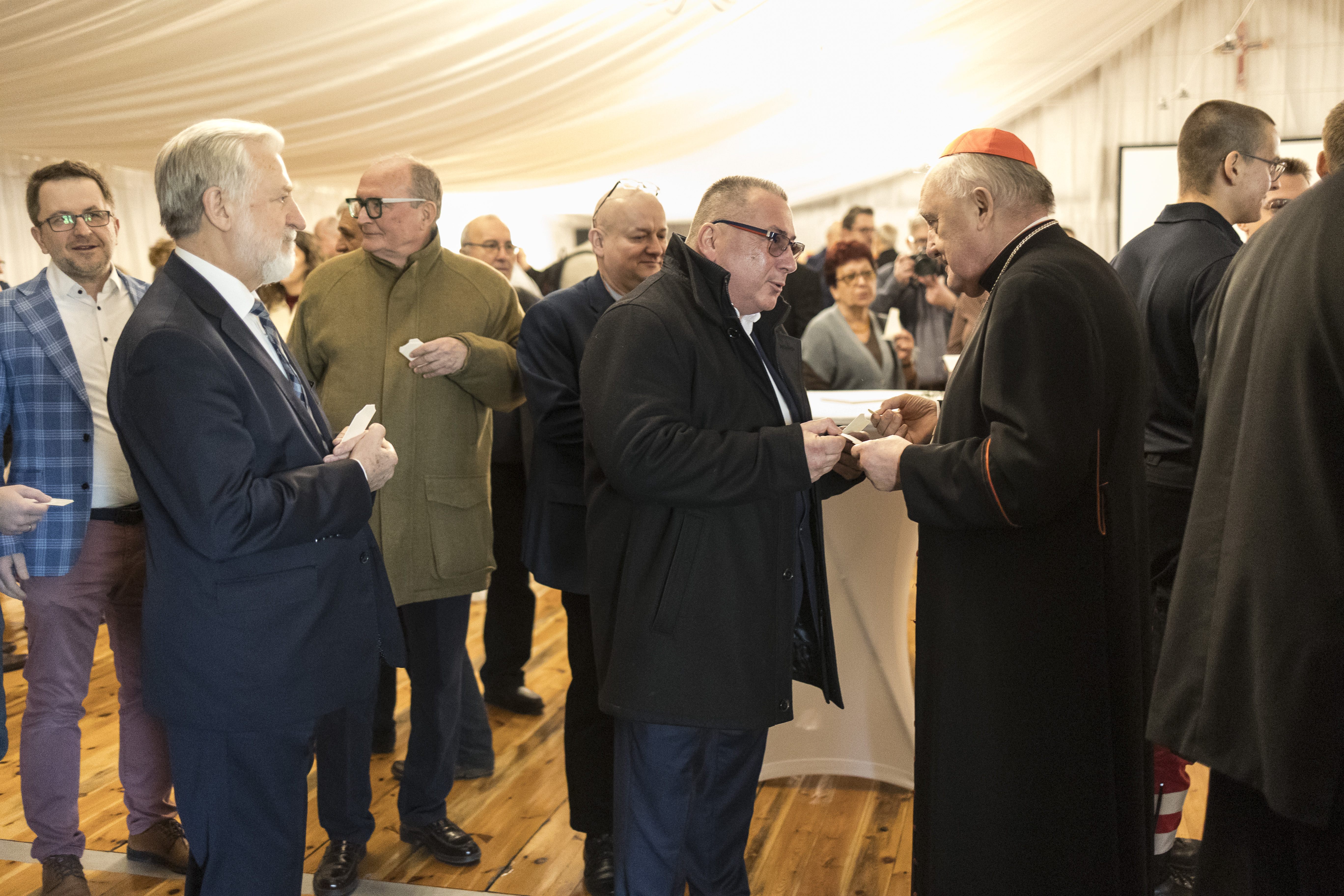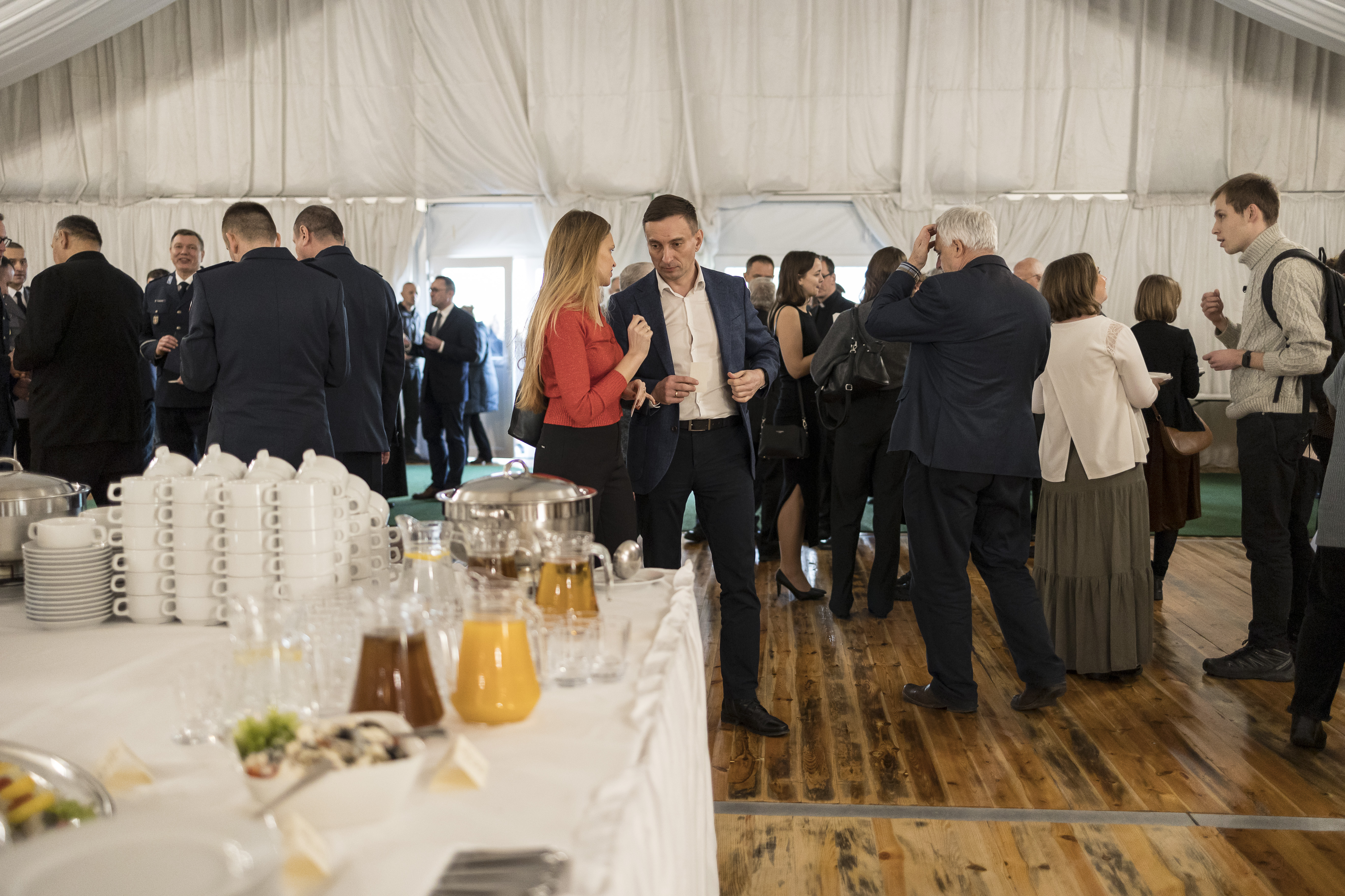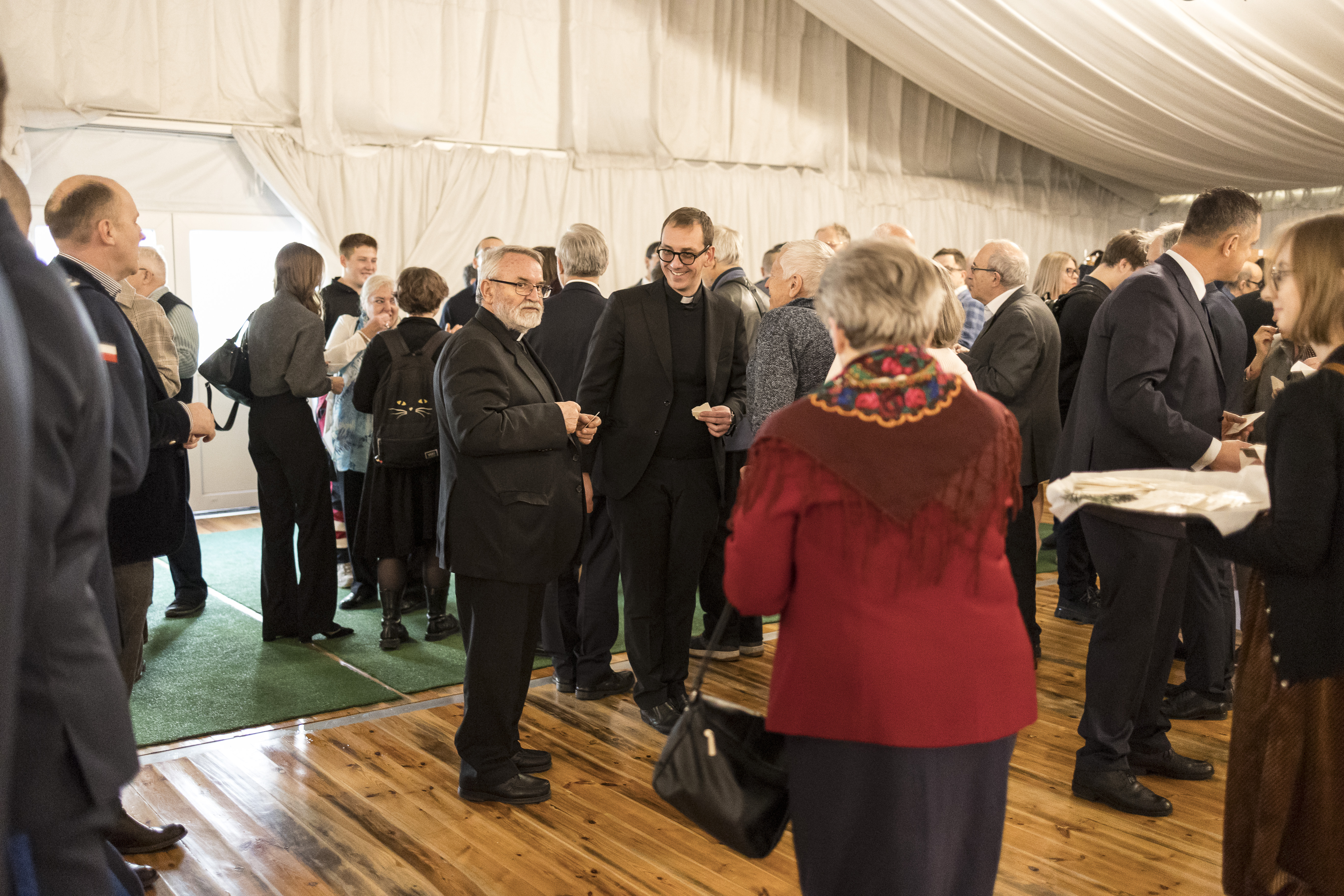 Po części oficjalnej w Świątyni Opatrzności Bożej przeszliśmy do namiotu na terenie Świątyni, gdzie była możliwość podzielenia się opłatkiem, złożenia życzeń. Spotkanie zakończyło się poczęstunkiem, któremu towarzyszyły rozmowy ze spotkanymi osobami.