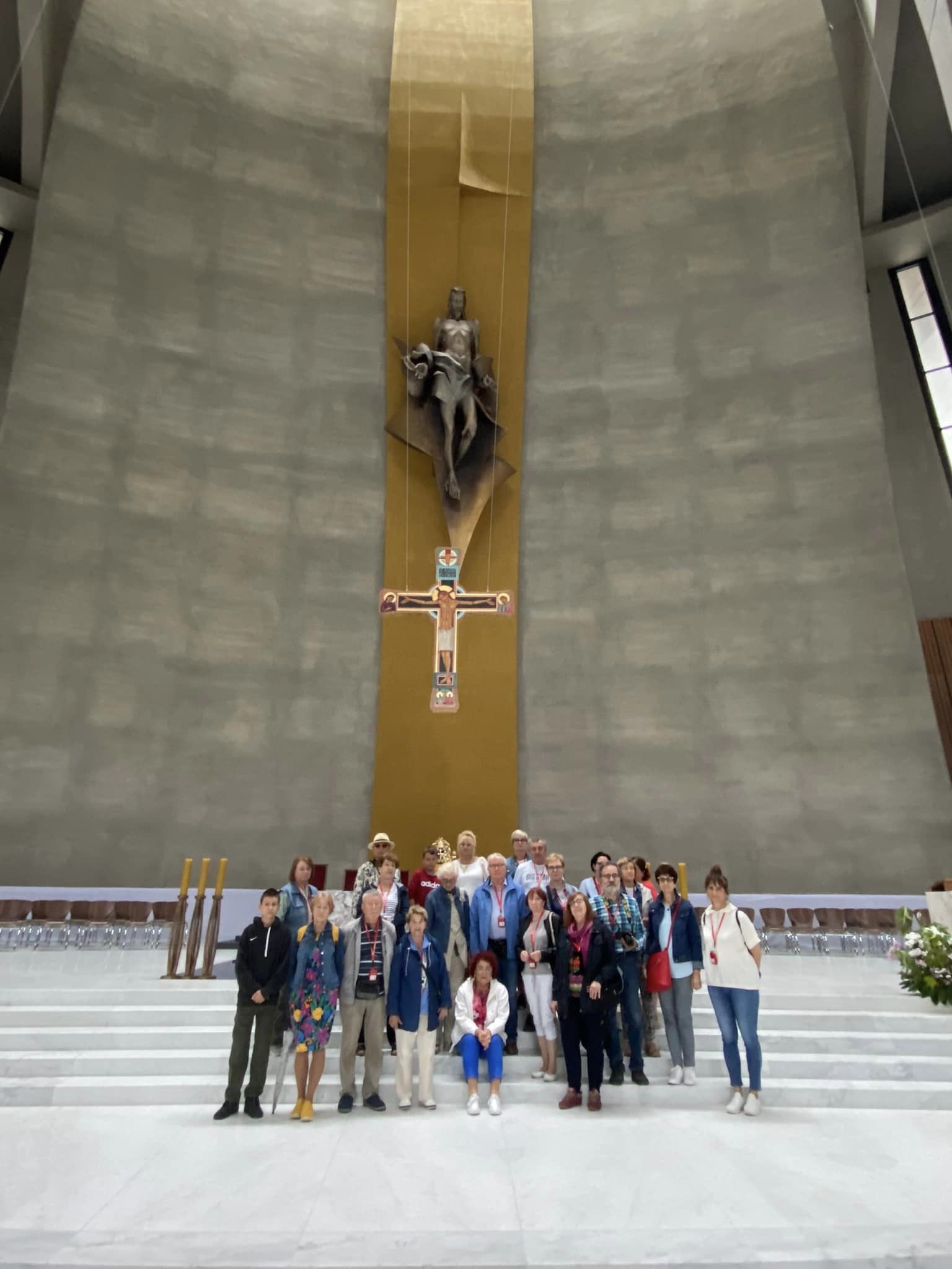 Pielgrzymi z Trójmiasta, którzy odwiedzili Świątynię 28 czerwca, są wyjątkowo aktywną grupą. Dopytują, pilnie oglądają każdy szczegół architektoniczny. Ze wzruszeniem słuchają opowieści przewodnika o Świecy Niepodległości.