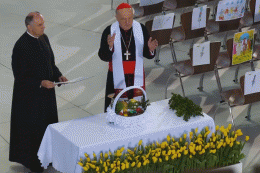 Otrzymaliśmy wiele pytań, przede wszystkim z tych krajów, w których zamknięte są kościoły, o to, czy w tym roku odbędzie się w Świątyni Opatrzności Bożej wirtualne święcenie pokarmów w Wielką Sobotę. Otóż tak. O godzinie 12.00 ksiądz biskup Rafał Markowski poświęci koszyczki ze “święconką”, a obrzęd ten będzie transmitowany zarówno na naszej stronie internetowej, jak i w telewizji Polsat News. Biskup Rafał zastąpi chorego kardynała Kazimierza Nycza, który miał dokonać obrzędu błogosławieństwa