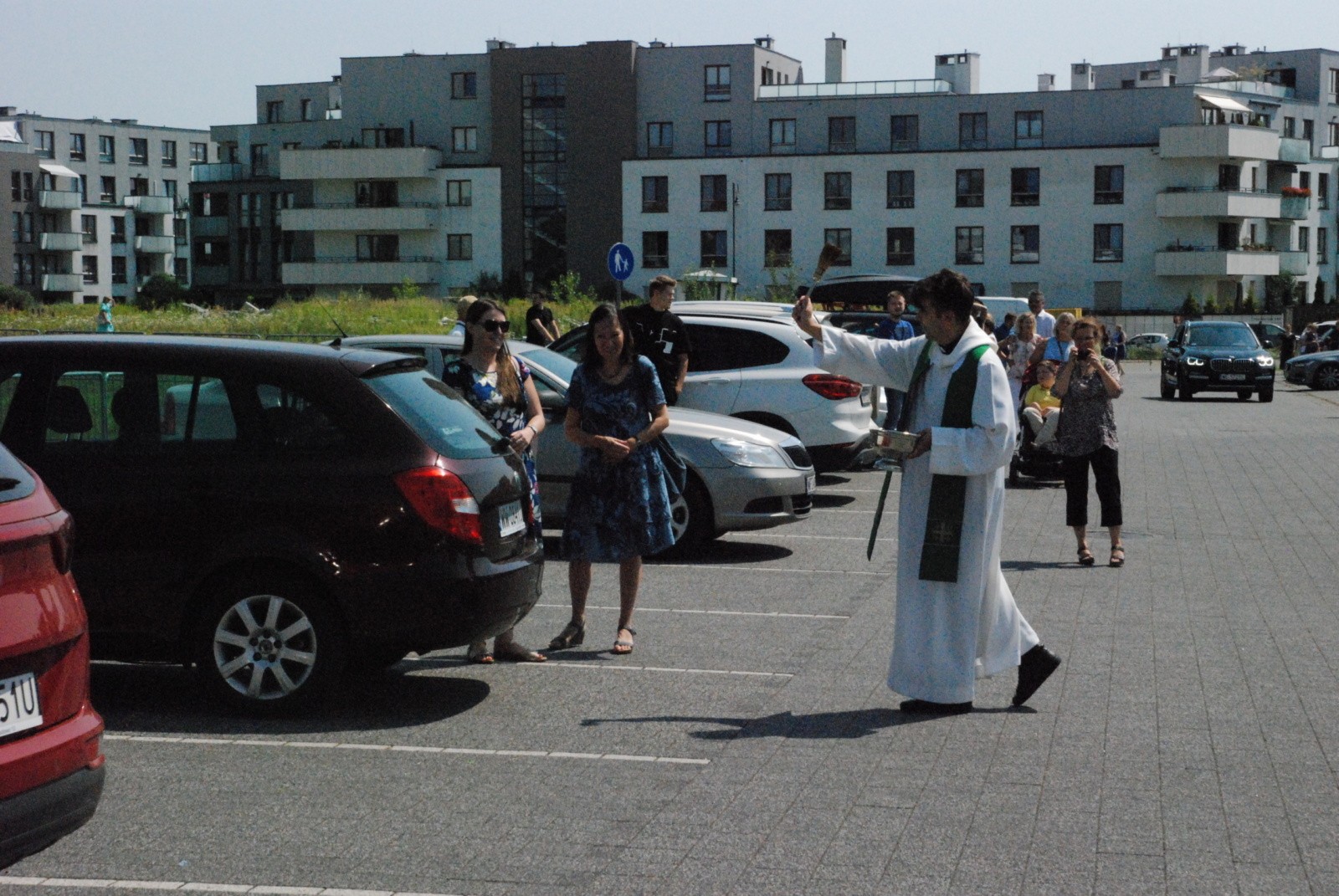 Inaczej niż w latach ubiegłych samochody nie podjeżdżały przed główne wejście do Świątyni lecz księża wyszli na parking i tam dokonywali obrzędu, który, choć stosunkowo młody, na trwale wpisał się w obyczajowość tego dnia.
