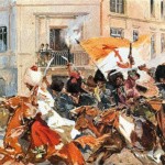 W gorącym czasie poprzedzającym wybuch Powstania Styczniowego, w Warszawie odbywały się liczne demonstracje patriotyczne. Rozpędzało je carskie wojsko, niejednokrotnie wpadając za chroniącymi się w świątyniach Polakami do wnętrza kościołów, w których wierni śpiewali zakazaną wówczas pieśń Boże, coś Polskę, błagając o wolność Ojczyzny.