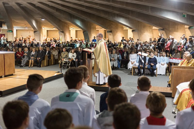Mimo dużych utrudnień komunikacyjnych, związanych z przebiegającą w pobliżu Świątyni Opatrzności Bożej trasą 38 PZU Maratonu Warszawskiego, tłumy wiernych szczelnie wypełniły Panteon Wielkich Polaków, gdzie odprawiona została odpustowa Msza Święta. Przybywali – sądząc po rejestracjach samochodów zapełniających parkingi – z całej niemal Polski. Przywitał ich proboszcz parafii Opatrzności Bożej i kustosz powstającego Sanktuarium, ksiądz Tadeusz Aleksandrowicz.