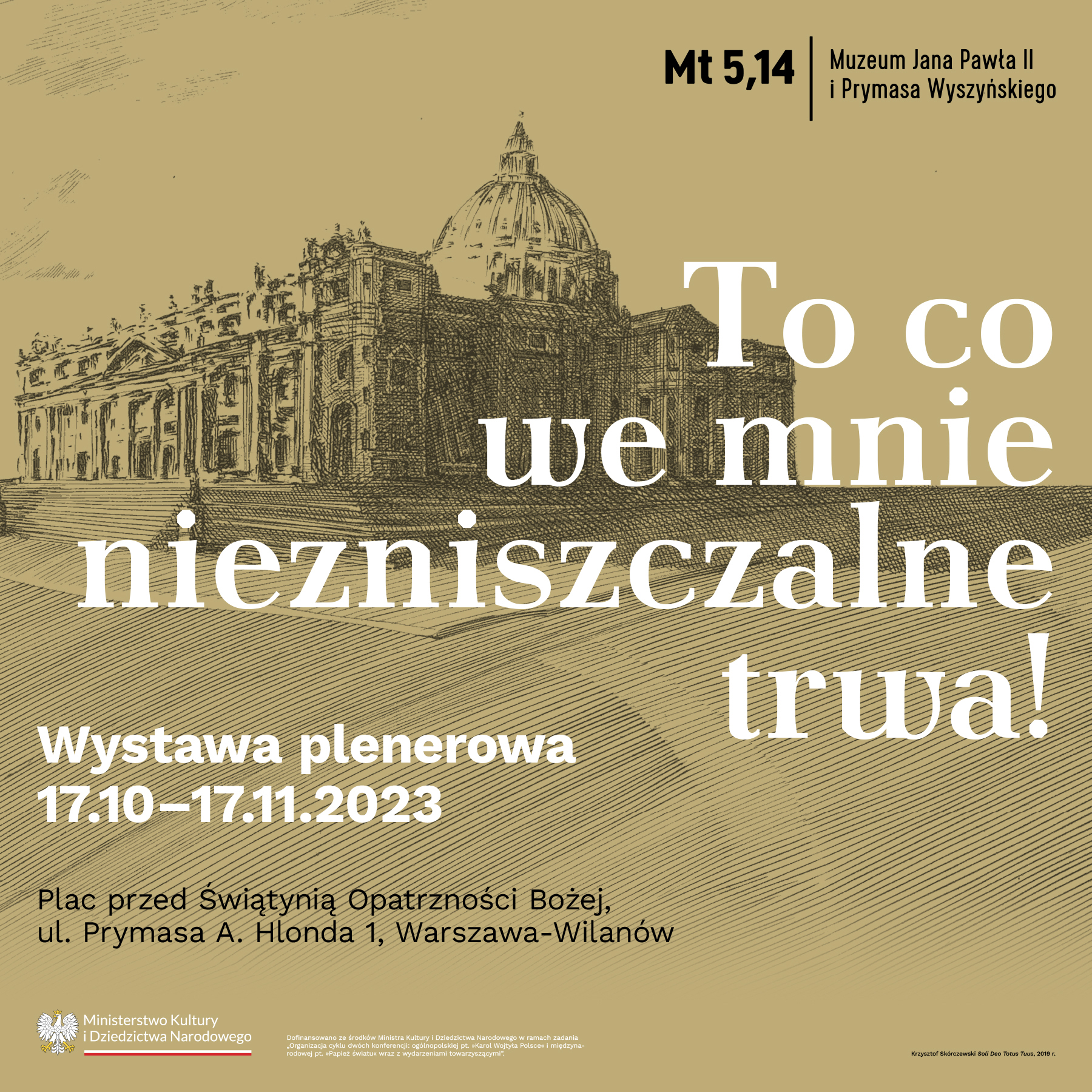 Na placu przed Świątynią Opatrzności Bożej stanęła wystawa To co we mnie niezniszczalne trwa! poświęcona Tryptykowi rzymskiemu Jana Pawła II. W zamyśle jej twórców z Mt 5,14 | Muzeum Jana Pawła II i Prymasa Wyszyńskiego ma skłonić odbiorcę do duchowej medytacji nad treścią utworu.