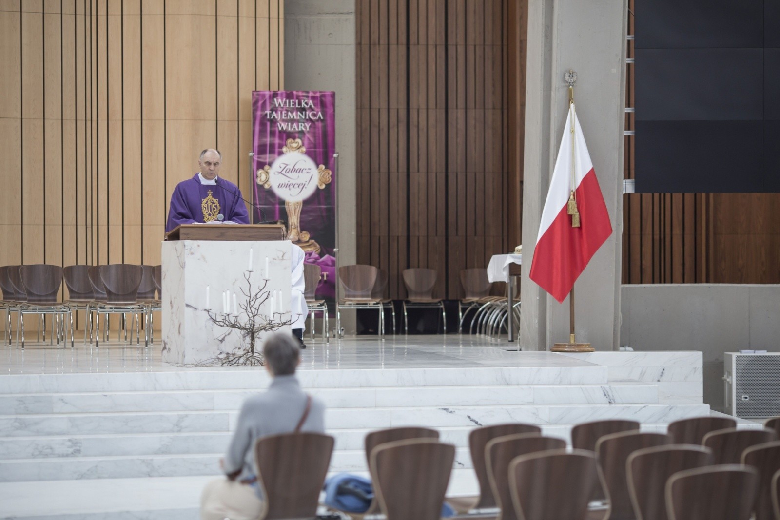 Ogrom wnętrza największego kościoła w stolicy pozwolił tym, którzy przybyli na Eucharystię, zachować wielometrowe odległości pomiędzy sobą.