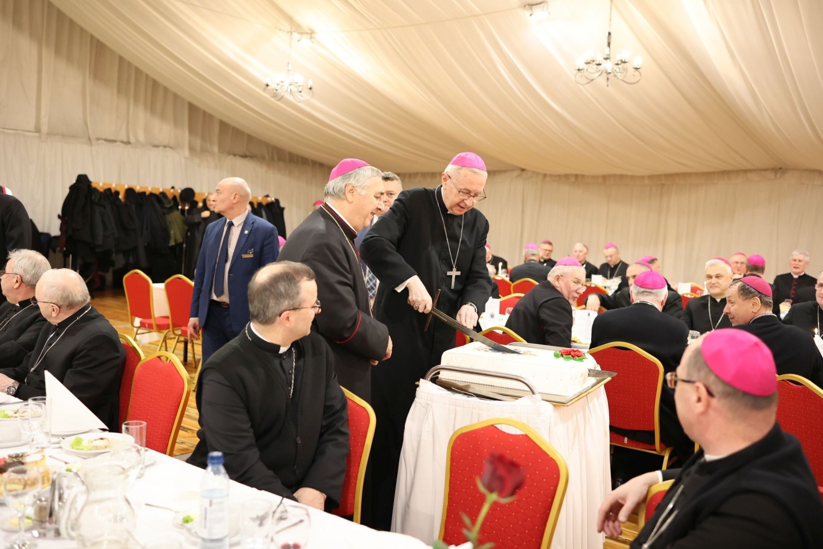 Po Eucharystii księża biskupi i zaproszeni goście przeszli do białego namiotu, gdzie ksiądz nuncjusz wraz z abp. Gądeckim podzielili przygotowany na tę okazję “urodzinowy” tort.