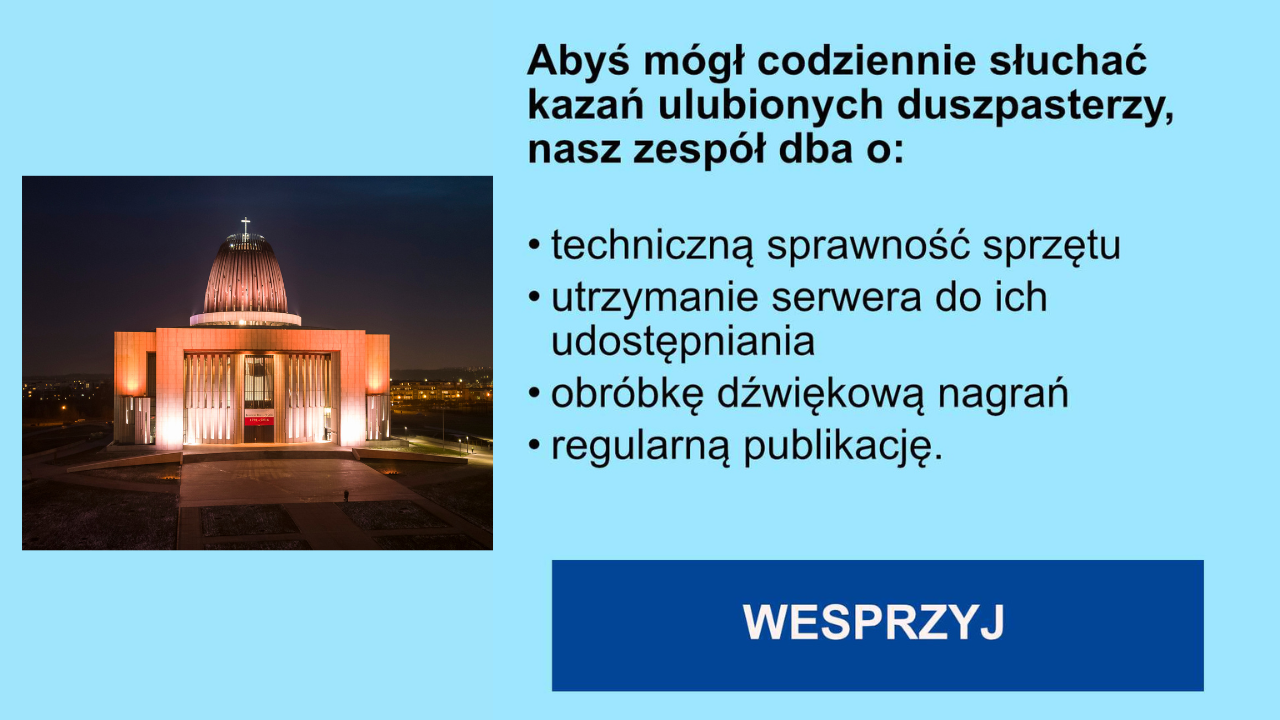 Wesprzyj nagrania kazań WESPRZYJ NAGRANIA KAZAŃ Imię*Nazwisko*E-mail* Ulica*Nr budynku*Nr mieszkaniaKod pocztowy*Miejscowość*Kraj*PolskaAfganistanAlbaniaAlgieriaAndoraAngolaAnguillaAntarktydaAntigua i BarbudaArabia SaudyjskaArgentynaArmeniaArubaAustraliaAustriaAzerbejdżanBahamyBahrajnBangladeszBarbadosBelgiaBelizeBeninBermudyBhutanBiałoruśBoliwiaBonaire, St Eustatius i SabaBotswanaBośnia i HercegowinaBrazyliaBrunei DarussalamBrytyjskie Terytorium Oceanu IndyjskiegoBurkina FasoBurundiBułgariaChileChinyChorwacjaCuraçaoCyprCzadCzarnogóraCzechyDaniaDemokratyczna Republika KongoDominikanaDominikana, RepublikaDżibutiEgiptEkwadorErytreaEstoniaEswatini (Suazi)EtiopiaFalklandyFederacja RosyjskaFidżiFilipinyFinlandiaFrancjaFrancuskie Terytoria PołudnioweGabonGambiaGhanaGibraltarGrecjaGrenadaGrenlandiaGruzjaGuamGuernseyGujanaGujana FrancuskaGwadelupaGwatemalaGwineaGwinea BissauGwinea RównikowaHaitiHeard Island and McDonald IslandsHiszpaniaHolandiaHondurasHongkongIndieIndonezjaIrakIranIrlandiaIslandiaIzraelJamajkaJaponiaJemenJerseyJordaniaKajmanyKambodżaKamerunKanadaKatarKazachstanKeniaKirgistanKiribatiKolumbiaKomoryKongoKorea PołudniowaKoreańska Republika Ludowo-DemokratycznaKostarykaKubaKuwejtLaotańska Republika Ludowo-DemokratycznaLesotoLibanLiberiaLibiaLiechtensteinLitwaLuksemburgMadagaskarMajottaMakauMalawiMalediwyMalezjaMaliMaltaMariany PółnocneMarokoMartynikaMauretaniaMauritiusMeksykMikronezjaMjanmaMonakoMongoliaMontserratMozambikMołdawiaNamibiaNauruNepalNiemcyNigerNigeriaNikaraguaNiueNorwegiaNowa KaledoniaNowa ZelandiaOmanPakistanPalauPalestynaPanamaPapua Nowa GwineaParagwajPeruPitcairnPolinezja FrancuskaPortorykoPortugaliaPołudniowa AfrykaPółnocna MacedoniaRepublika Afryki ŚrodkowejRepublika Zielonego PrzylądkaReunionRumuniaRwandaSahara ZachodniaSaint Kitts i NevisSaint LuciaSaint Pierre i MiquelonSaint Vincent i GrenadynySaint-BarthélemySaint-MartinSalwadorSamoaSamoa AmerykańskaSan MarinoSenegalSerbiaSeszeleSierra LeoneSingapurSint MaartenSomaliaSouth Georgia and the South Sandwich IslandsSri LankaStany ZjednoczoneStolica ApostolskaSudanSudan PołudniowySurinamSvalbard i Jan MayenSyryjska Republika ArabskaSzwajcariaSzwecjaSłowacjaSłoweniaTadżykistanTajlandiaTajwanTanzania, Zjednoczona RepublikaTimor-LesteTogoTokelauTongaTrynidad i TobagoTunezjaTurcjaTurkmenistanTuvaluUS Minor Outlying IslandsUgandaUkrainaUrugwajUzbekistanVanuatuWallis i FutunaWenezuelaWietnamWybrzeże Kości SłoniowejWyspa Bożego NarodzeniaWyspa ManWyspa NorfolkWyspa Świętej Heleny, Wyspa Wniebowstąpienia i Tristan da CunhaWyspy AlandzkieWyspy BouvetWyspy CookaWyspy Dziewicze, U.S.A.Wyspy Dziewicze, Wielka BrytaniaWyspy KokosoweWyspy MarshallaWyspy OwczeWyspy SalomonaWyspy Turks i CaicosWyspy Świętego Tomasza i KsiążęcaWęgryWłochyZambiaZimbabweZjednoczone Emiraty ArabskieZjednoczone KrólestwoŁotwaTelefon komórkowyTelefon stacjonarnyAdministratorem danych osobowych wysłanych za pośrednictwem formularza jest Centrum Opatrzności Bożej - Wotum Narodu – Miejsce Kultu, Pamięci, Kultury z siedzibą w Warszawie, przy ul. Miodowej 17/19, NIP 525-24-23-501. Zasady przetwarzania danych osobowych, w tym prawa osób, których dane dotyczą zawiera Polityka prywatności Kontakt w sprawach danych osobowych pod adresem: biuro@centrumopatrznosci.pl Pola z * są obowiązkowe.Oświadczam, że* zapoznałam/łem się z Polityką prywatności i akceptuję jej treść.Wyrażam zgodę na: otrzymywanie mailem informacji o wydarzeniach i uroczystościach religijnych organizowanych przez Centrum Opatrzności Bożej. otrzymywanie informacji o wydarzeniach i uroczystościach religijnych organizowanych przez Centrum Opatrzności Bożej na podany numer telefonu. Tak chcę wpłacić darowiznę online (Tpay) wpłacę darowiznę przelewem tradycyjnym Kwota darowizny* Deklaruję, że wpłacę przelewem* Razem zł 0,00 Pobierz blankiet przelewu Δ Podziel się: