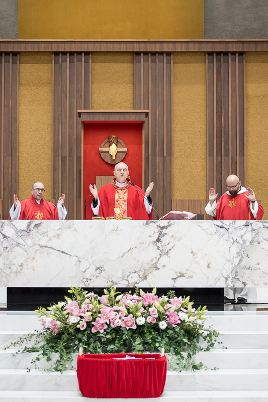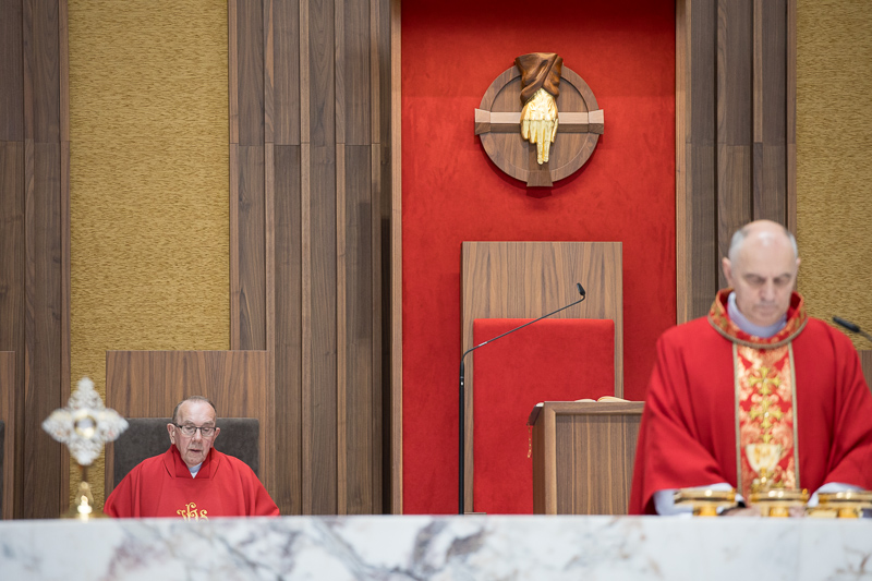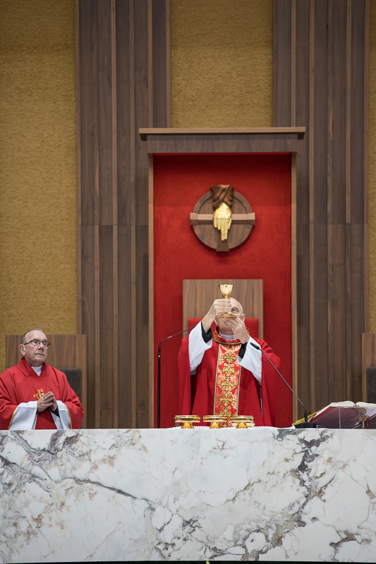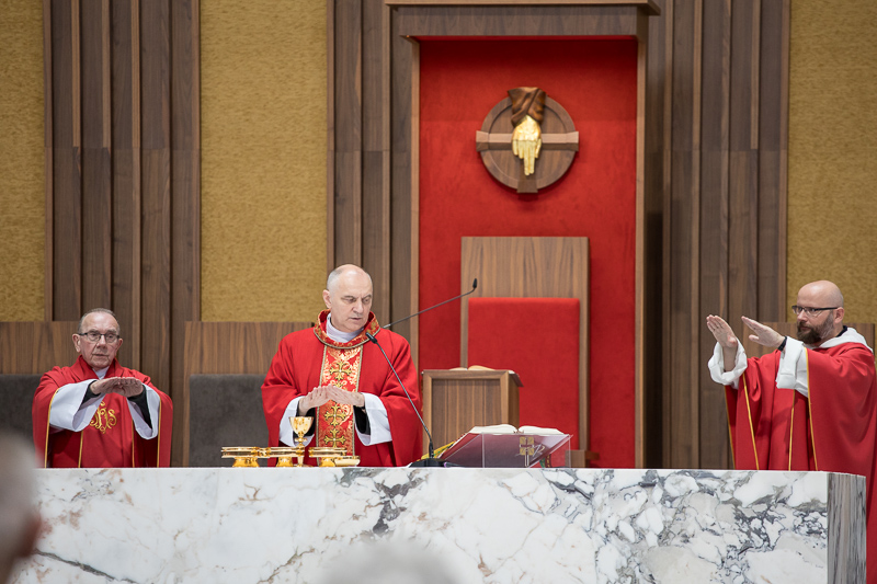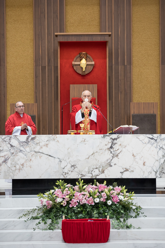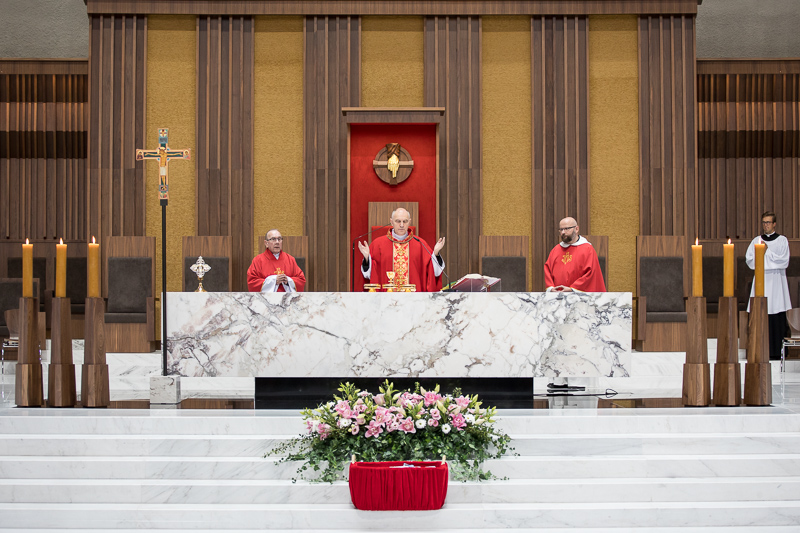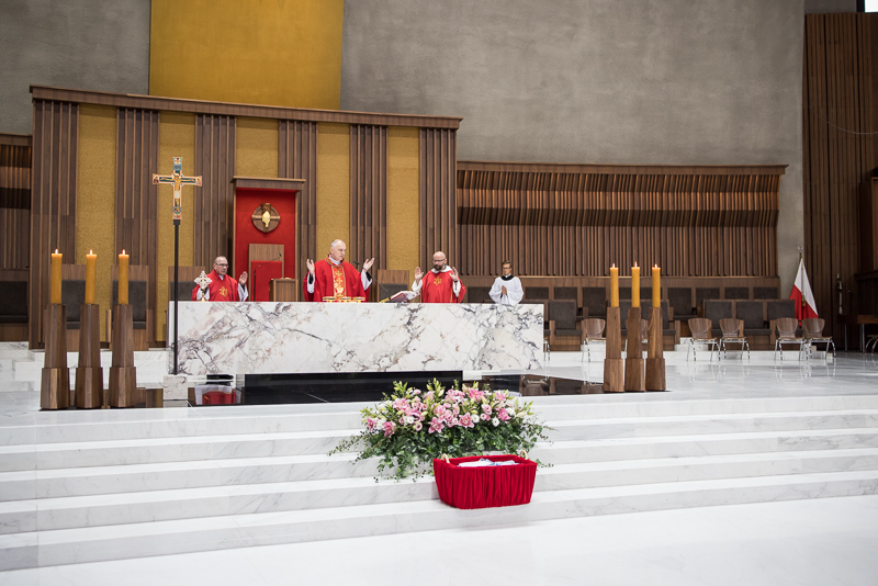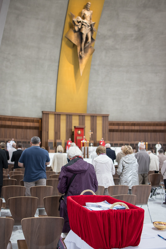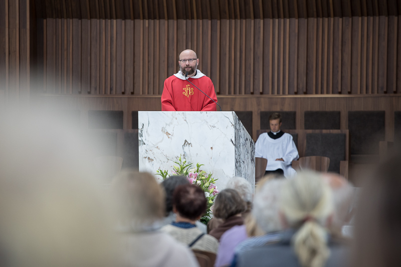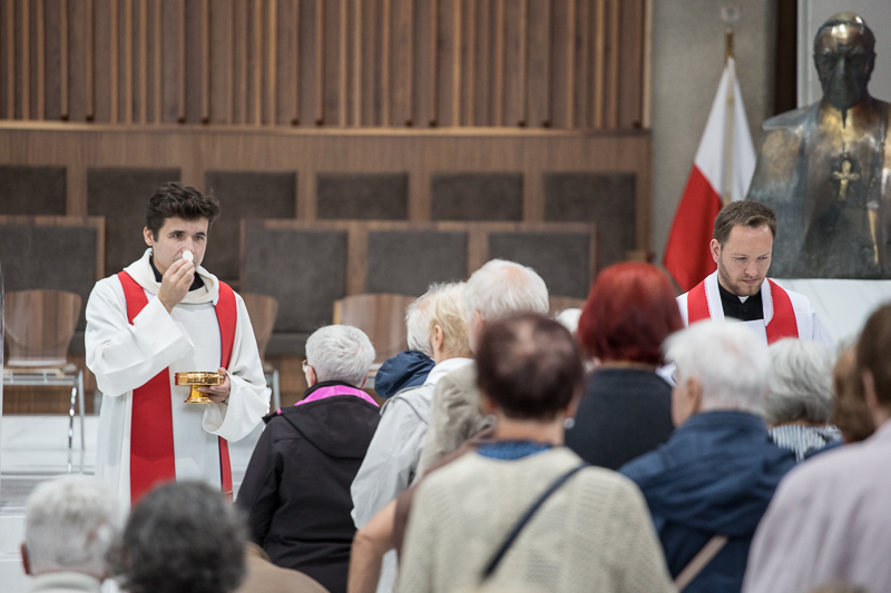 Po konferencji i chwili na refleksję rozpoczęła się uroczysta Msza Święta koncelebrowana przez księdza proboszcza Tadeusza Aleksandrowicza i o. Janusza Pydę OP. W kazaniu o. Janusz Pyda skoncentrował się na wymowie święta Podwyższenia Krzyża, które obchodziliśmy tego dnia. Zwrócił uwagę, że jest to święto radosne, bo celebrujemy zwycięstwo życia nad śmiercią. Krzyż nie jest bowiem ostatnim słowem i Bóg z krzyża wyprowadza życie. O. Pyda zaprosił uczestników Eucharystii, aby prosili Boga o siły do wyjścia z więzienia krzyża i niesienia go tak, jak Jezus niósł swój krzyż – zauważając cierpienia innych i spiesząc im z pomocą. Dominikanin zwrócił uwagę, że kiedy niesiemy innym ulgę, nasz krzyż nie staje się lżejszy, ale łatwiej jest go nieść.