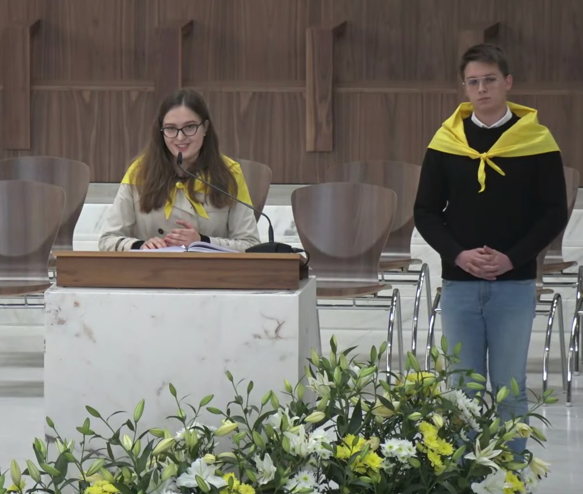 „Fundacja jest dla mnie jak drugi dom” – mówiła Kasia, studentka logopedii Uniwersytetu Warszawskiego, która wraz z Mateuszem, studentem informatyki UW jako stypendyści FDNT wyrazili w Świątyni Opatrzności Bożej swoją wdzięczność, że dzięki wsparciu Fundacji oni i ich przyjaciele, młodzi zdolni ludzie z ubogich rodzin, mogą rozwijać potencjał intelektualny i duchowy.
